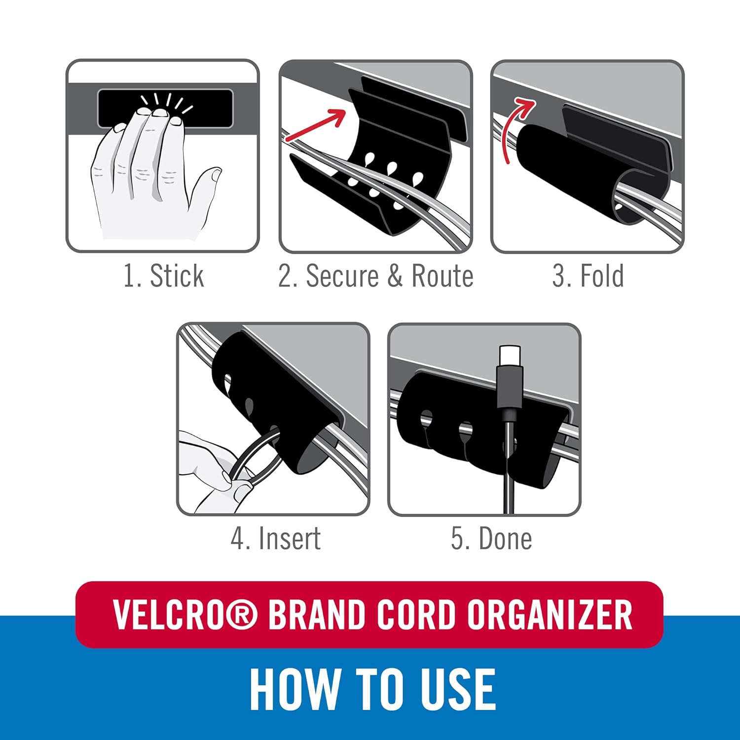 - DESK ORGANIZATION: Practice better cable management with VELCRO Brand wire organizers for cords. Manage cables such as power cords, USB cables, HDMI cables effectively, prevent confusion and clutter