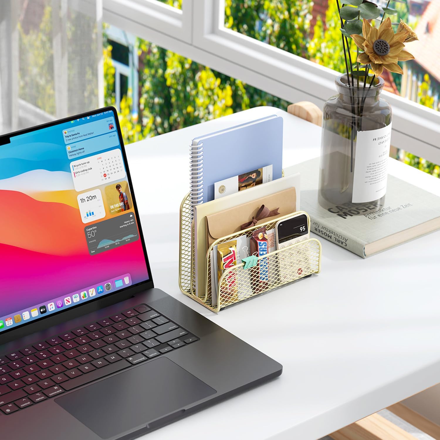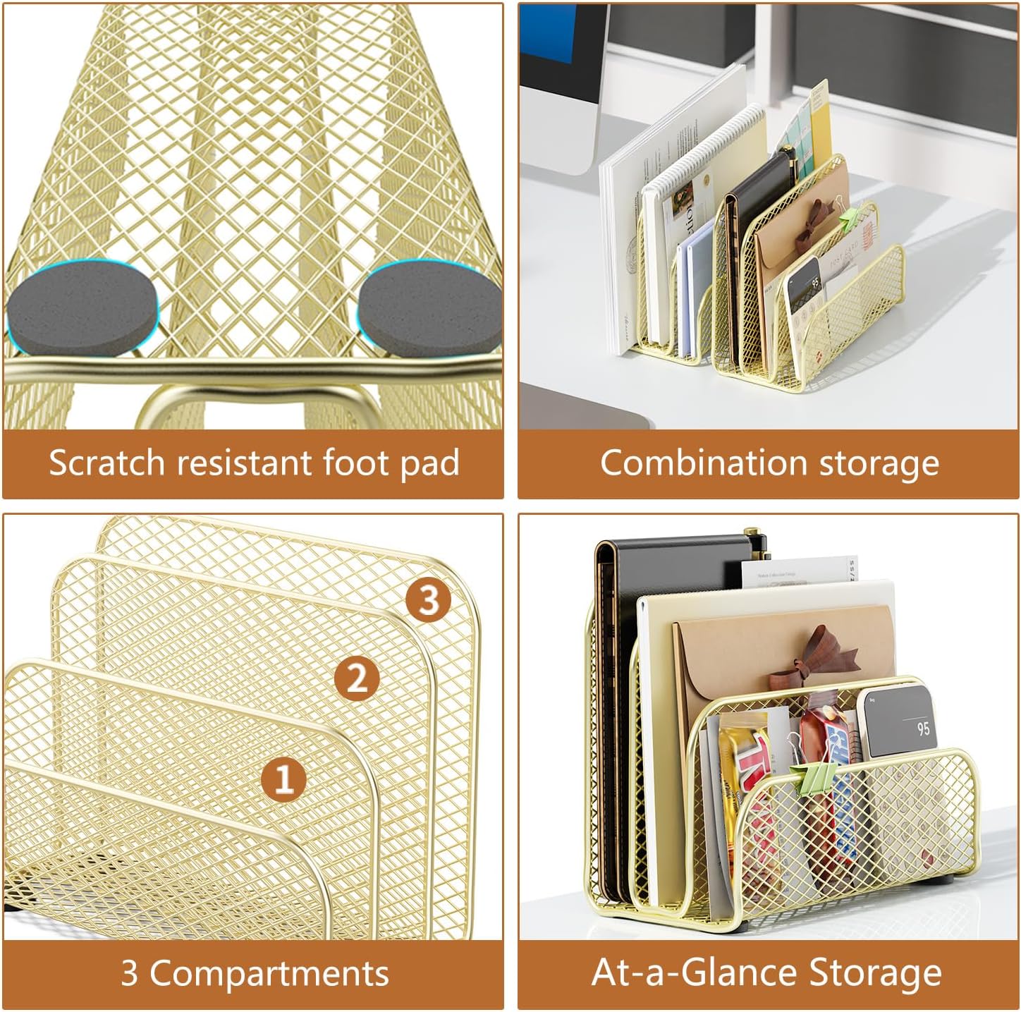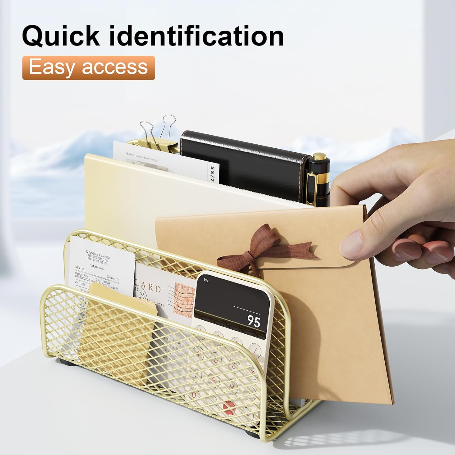 gianotter Mail Organizer Countertop, Metal File Holder with 3-Slot, Gold Desk Accessories for Office (Gold)