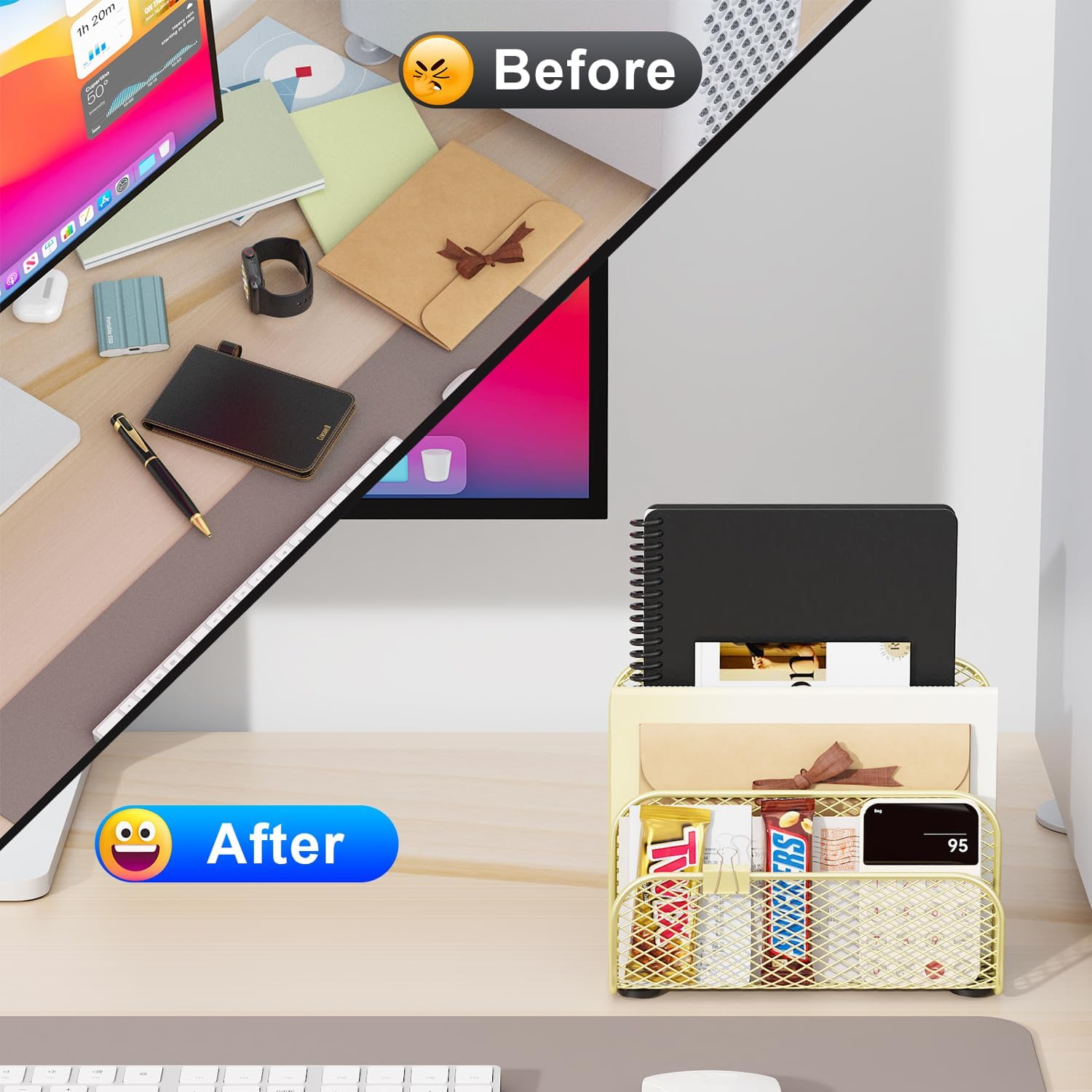 - 【Space-Saving】This compact desk mail holder measures 6.6*5.4*3 inches, effectively reducing desk clutter while maximizing desk space utilization and keeping the desk tidy.