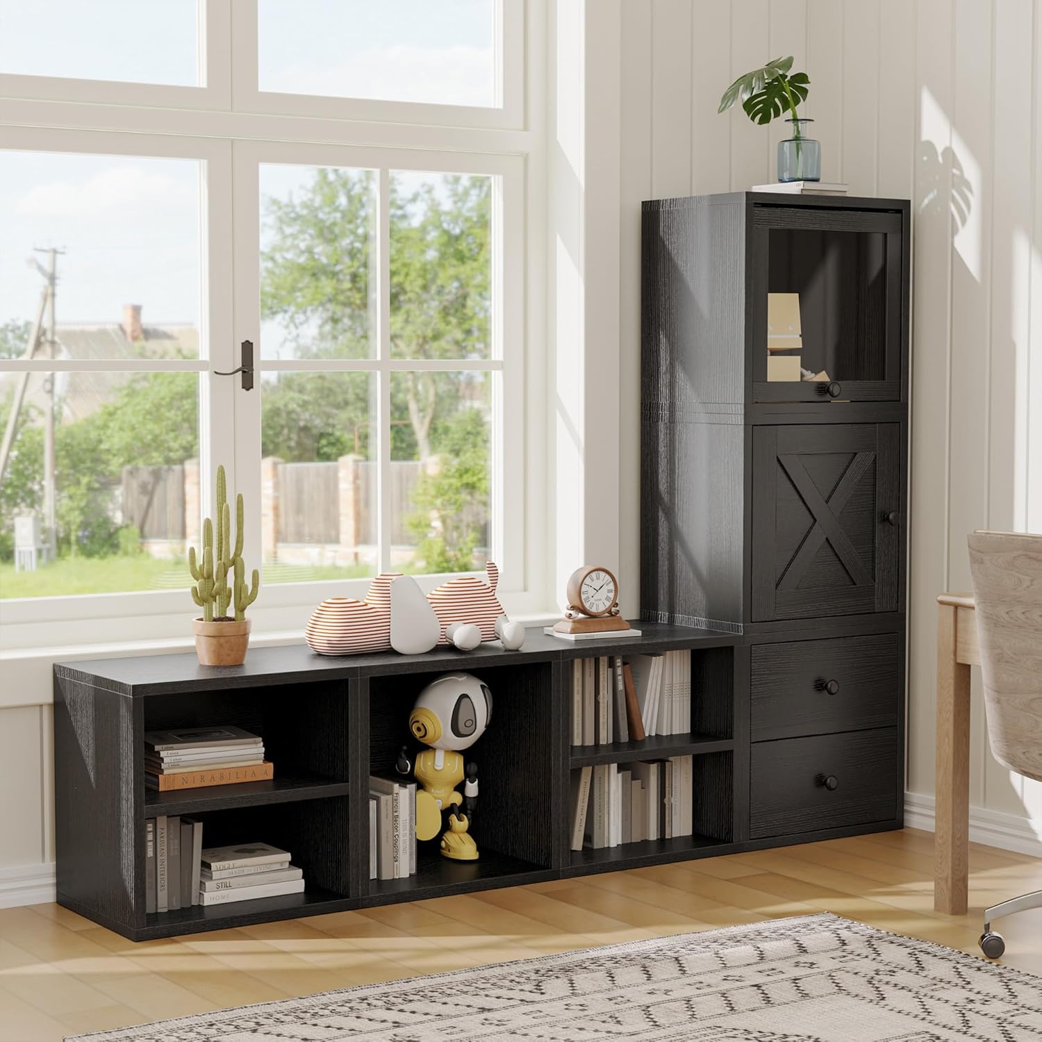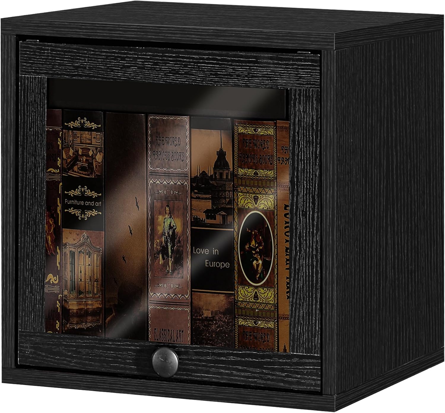 FUSUNBAO Magic DIY Cube Storage Organizer Stackable Cubes for Home Books Clothes Toy-Modular Cubby Storage System-Office Cubical-Bookcase Closet(Black, Glass Door Cube)