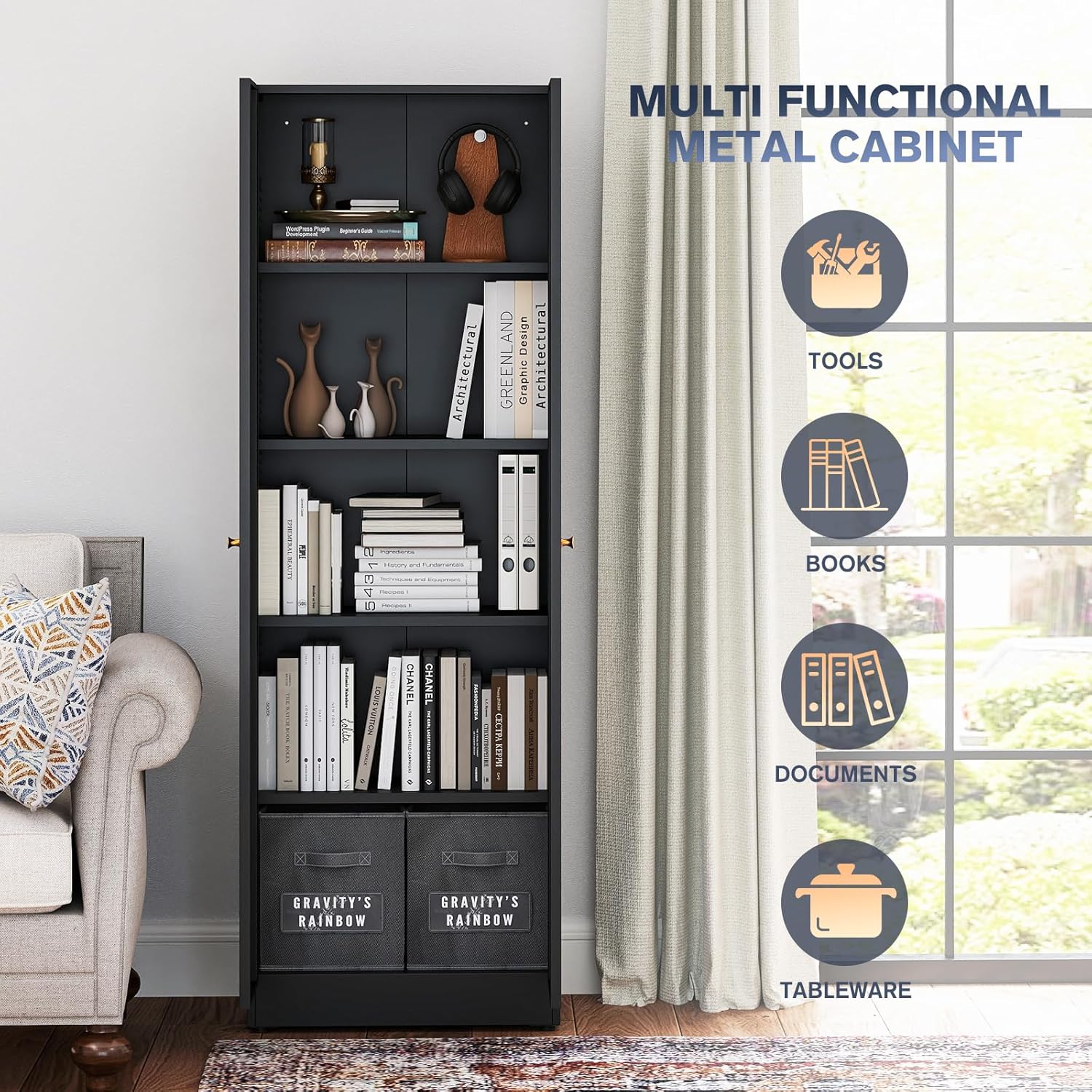 - Recommended Uses For Product : Bookcase with doors and shelves, Bookshelf with doors and shelves, Curio storage cabinet with doors and shelves, Display cabinet with Acrylic doors for collectibles, Display case with doors and shelves, Display cases for collectibles, Kitchen panty cabinet with Acrylic doors, Kitchen storage cabinet with doors and shelves, Living room storage cabinet, Metal Garage storage cabinet for tools, Tall bookcase with Acrylic doors Bookcase with doors and shelves, Bookshelf with doors and shelves, Curio storage cabinet with doors and shelves, Display cabinet wit… See more
