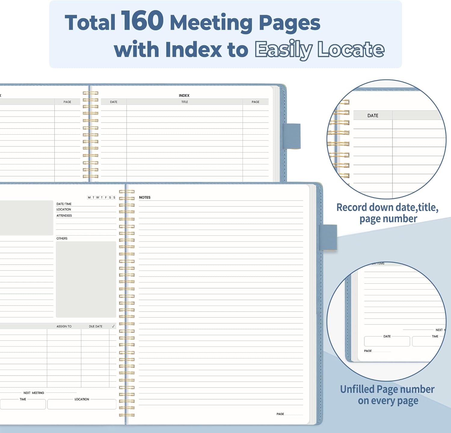 - Each 160 Pages Per Book: Provide ample space for note taking & planning and with the date section at the top for tracking them. With 160 pages for meeting minutes, the manager notebook will cover more than half a year, even in daily use. Also provides index pages for organizing this office planner.
