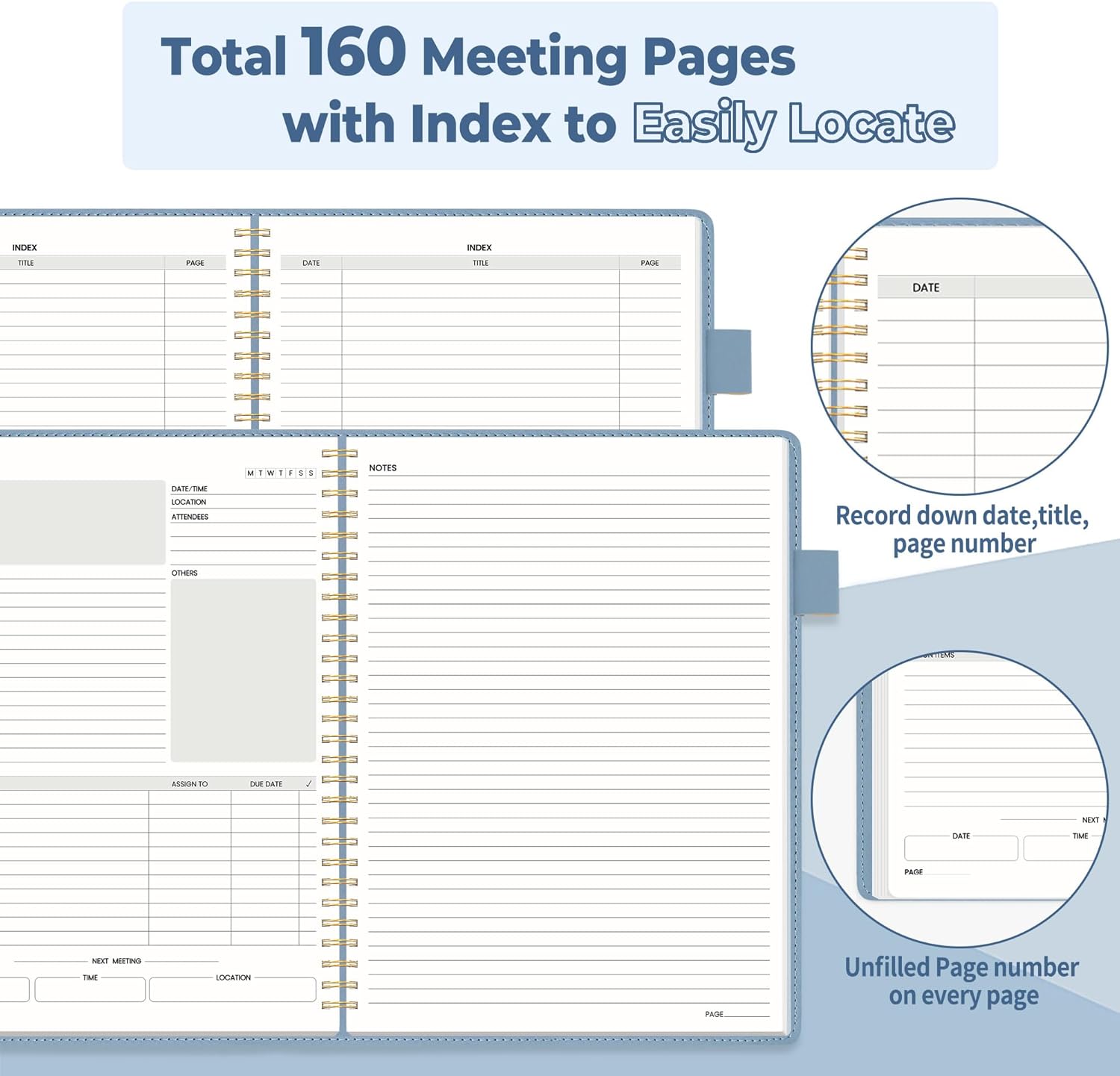 - Each 160 Pages Per Book: Provide ample space for note taking & planning and with the date section at the top for tracking them. With 160 pages for meeting minutes, the manager notebook will cover more than half a year, even in daily use. Also provides index pages for organizing this office planner.