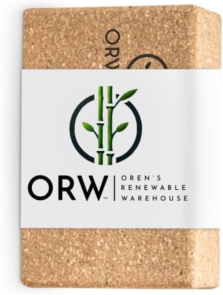 ORW Natural Cork Yoga Block – 9”x6”x3”, 1.5 lbs – Heavyweight, Non-Slip, Eco-Friendly – Dense Yoga Prop for All Levels