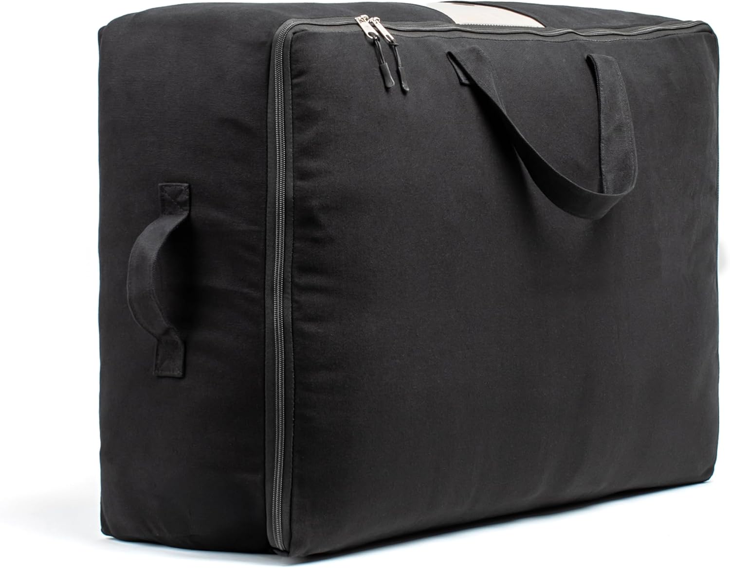 - COTTON CANVAS STORAGE WITH CLEAR WINDOW: You need to see which duvet storage or bed sheet storage is inside your case, right? So we added a scratch-resistant window to our beautiful black canvas storage bag. This big full-sized viewing pane lets you see all your seasonal storage at a glance.