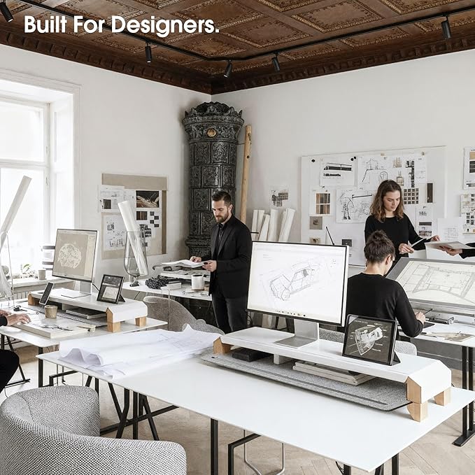 - 【Stable & Durable】Crafted from solid premium beech wood—not flimsy particle board—the Fenge monitor stand delivers lasting strength. Four sturdy legs provide a 55 lb load capacity, so you can securely place your computer, tablet, and laptop on the same desk shelf without wobble. Whether you're working or gaming all night, this monitor riser for desk stays firmly in place.