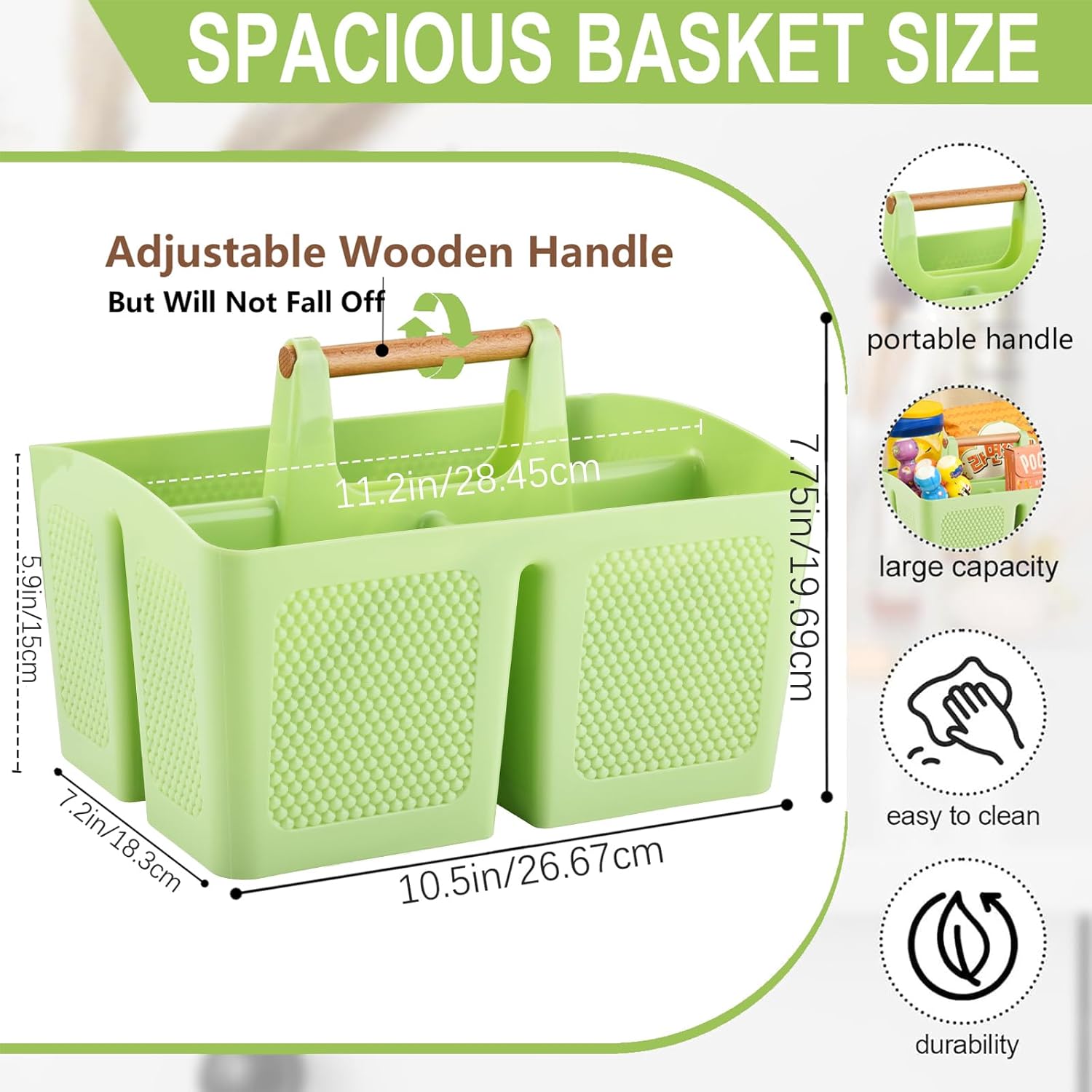 Haundry Plastic Green Shower Caddy Basket with 3 Compartments, Portable Divided Bathroom Cleaning Caddy Organizer Storage Tote with Handle for Dorm, College, Room Essentials