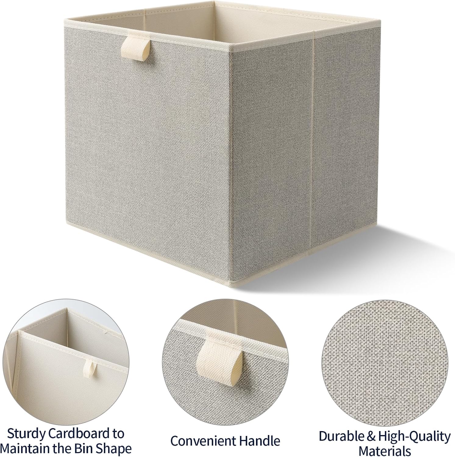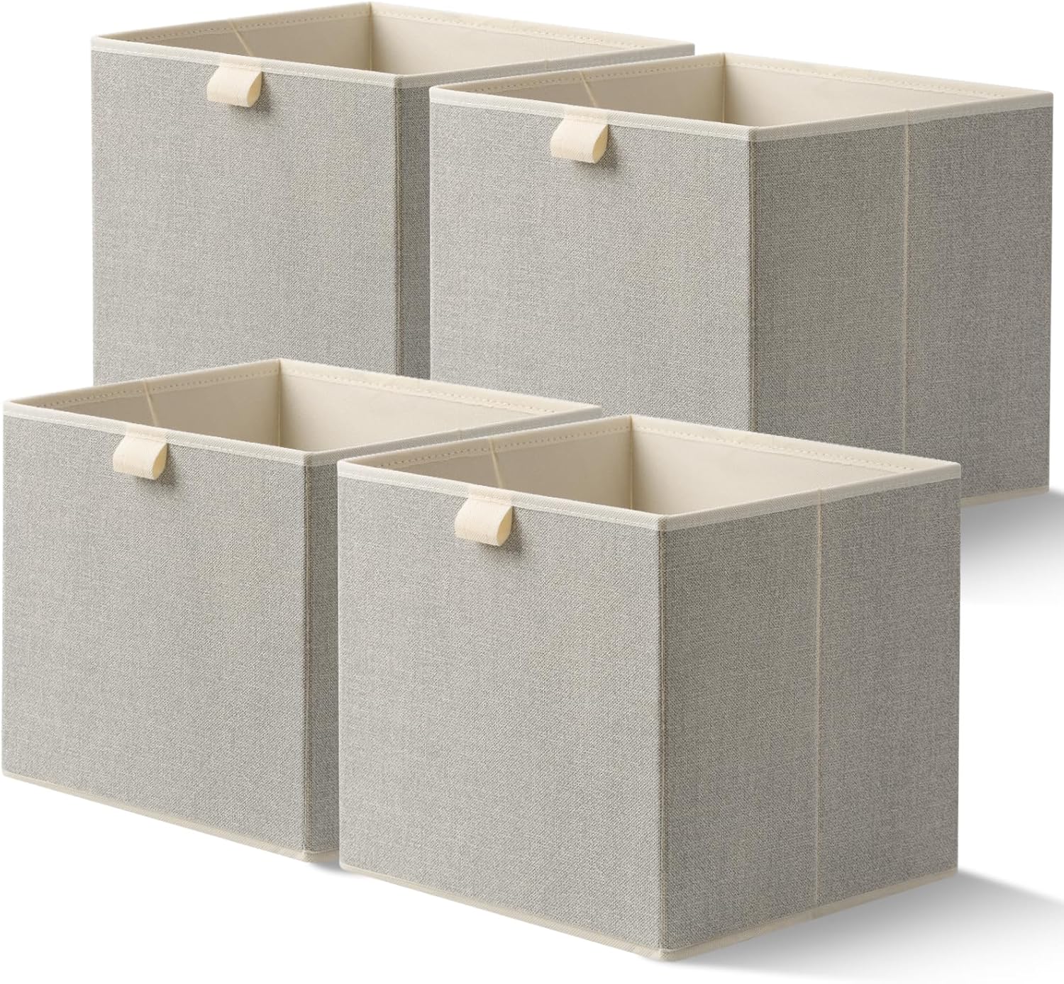 Storage Baskets, 11.8-Inch Woven Fabric Bins, Storage Cubes with Reinforced Handles, Organizer Bins for Closet Shelves, Foldable, for Toys, Clothes, Natural Beige (4PCS/Beige-11.8*11.8*11.8inch)