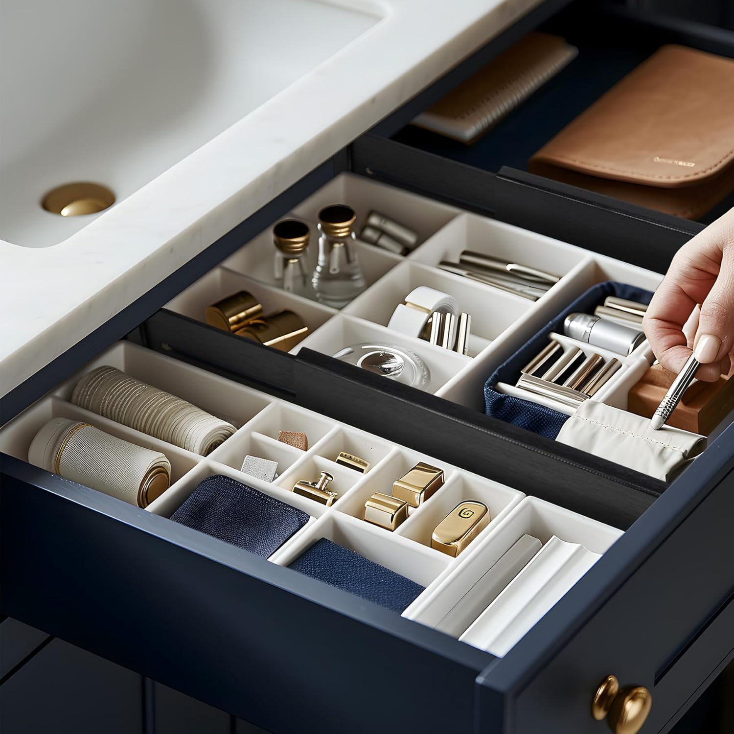 - Easy Installation & Removal: The expandable drawer divider features a built-in spring that keeps it securely in place. It's easy to adjust, so you can customize it to fit your changing needs. Ideal for sturdy drawers, ensuring your items stay organized