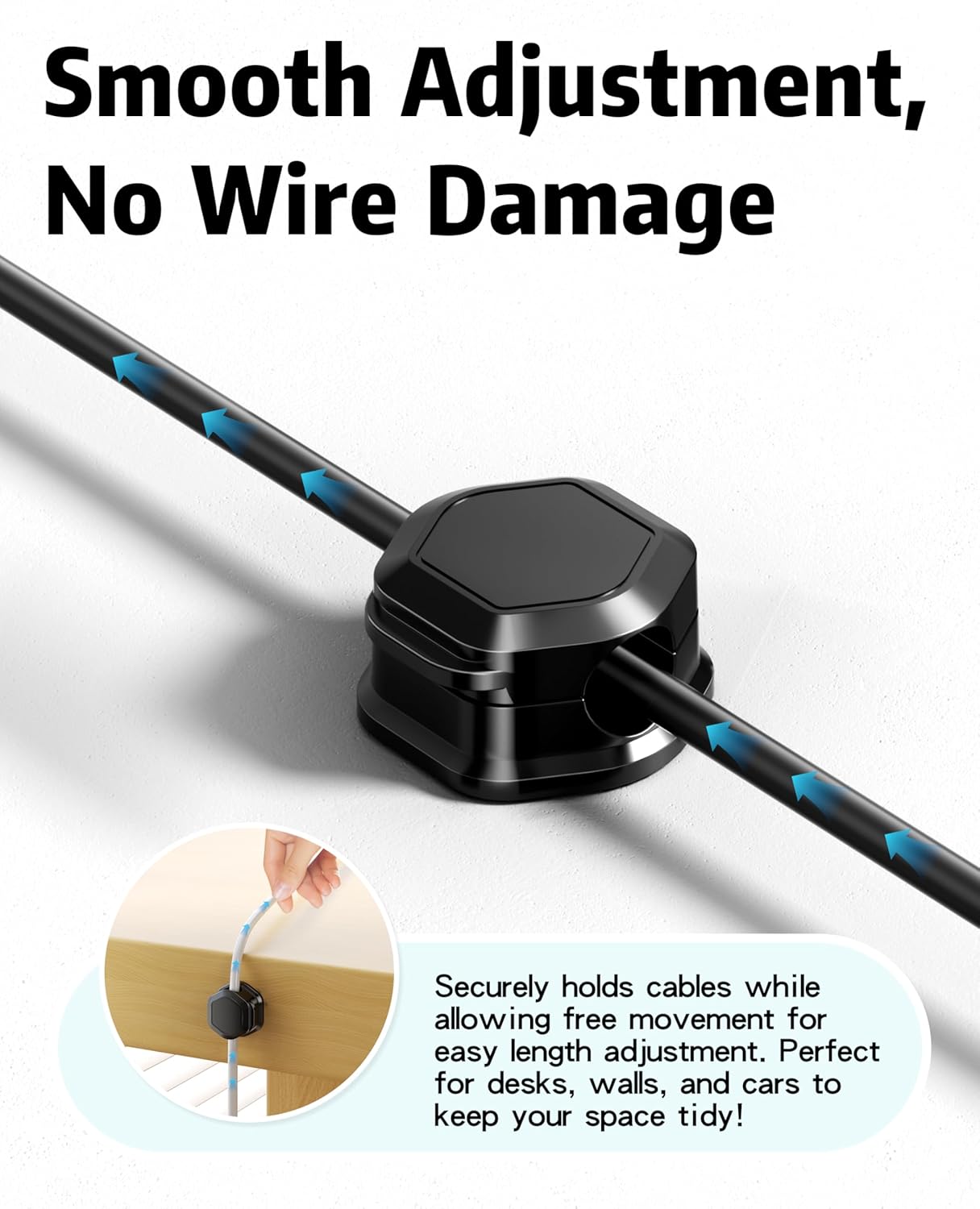 - No Residue & Damage-Proof: The adhesive cable clip uses well-strength PET backing that grips firmly yet removes cleanly from wood, glass, or tile. The weighted hexagonal base prevents tipping, keeping desk organizers sleek and professional