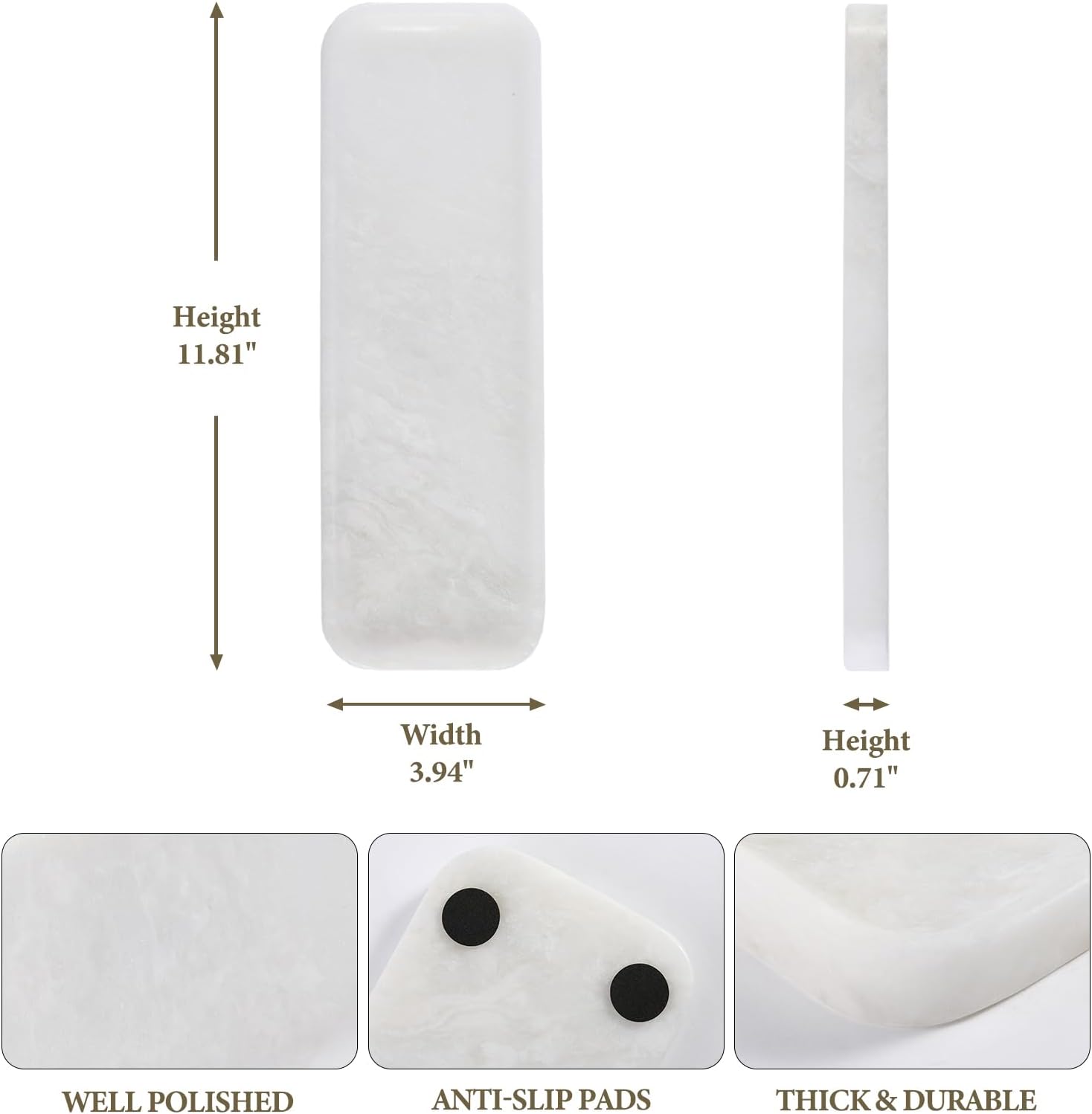 - 【Easy To Clean】The rectangle tray measures 11.8 x 3.9 x 0.7 inches, perfect for organizing and displaying your daily essentials. The marble vanity tray is easy to clean by simply wiping with a damp cloth to remove dirt and stains. Four non-slip pads on the bottom of the tray protect the marble from sliding and scratching the surface