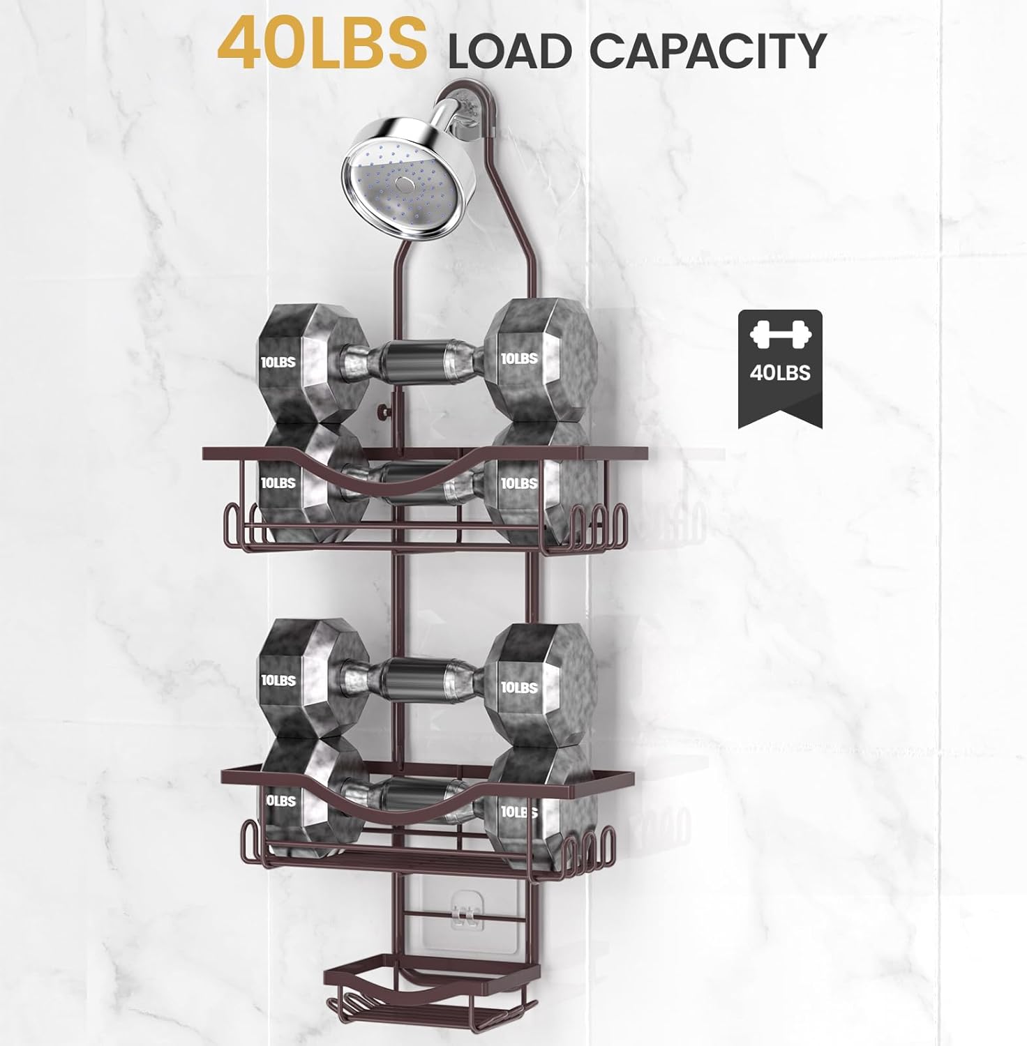 - 【Adjustable Shower Caddy】Streamline your shower organization with the shower caddy hanging featuring adjustable height settings. Tailor the height of the bronze shower caddy hanging to perfectly suit your shower space, whether you prefer easy-to-reach toiletries or extra room for taller bottles. The adaptable shower organizer effortlessly conforms to your needs for a personalized shower experience.