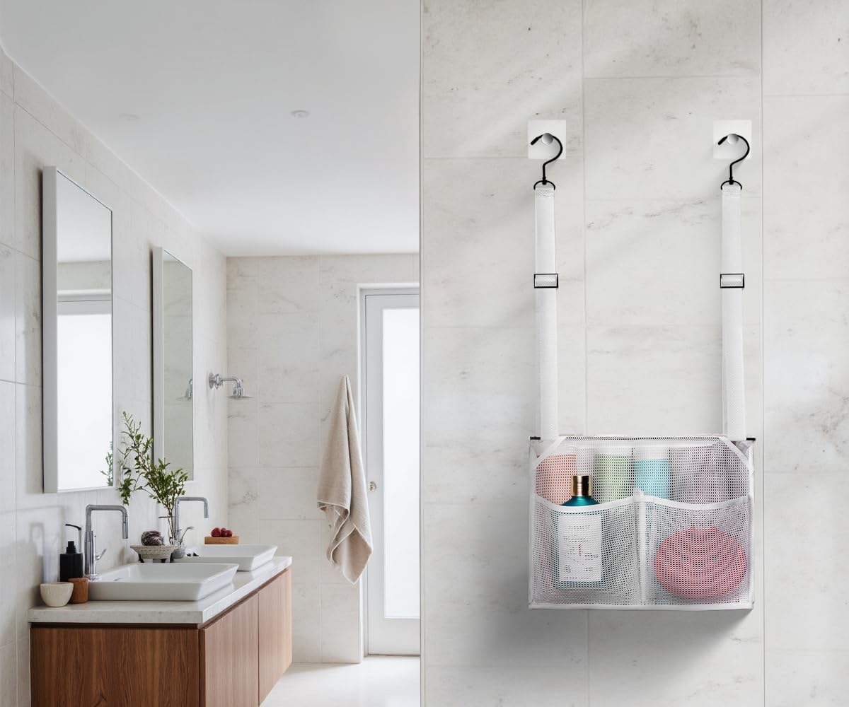 - Flexible & Versatile Hanging System: Adjustable hanging straps (adjustable from 10'' to 19'' height) with metal hooks enable easy attachment to shower rods, doorknobs, towel racks, or doors, keeping your items off floor and always at an easily accessible height.