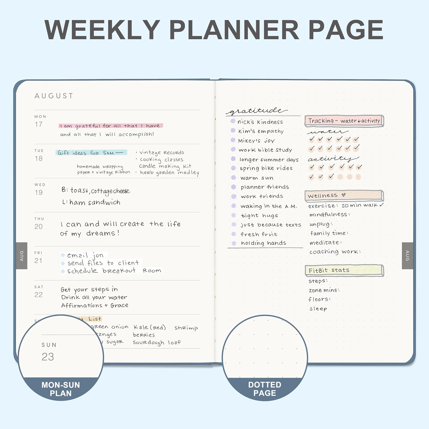 - WEEKLY VIEW:From Monday to Sunday, it provides ample space for line writing, and the dotted page on the right can be used to design and paint, which is easy to manage daily tasks.