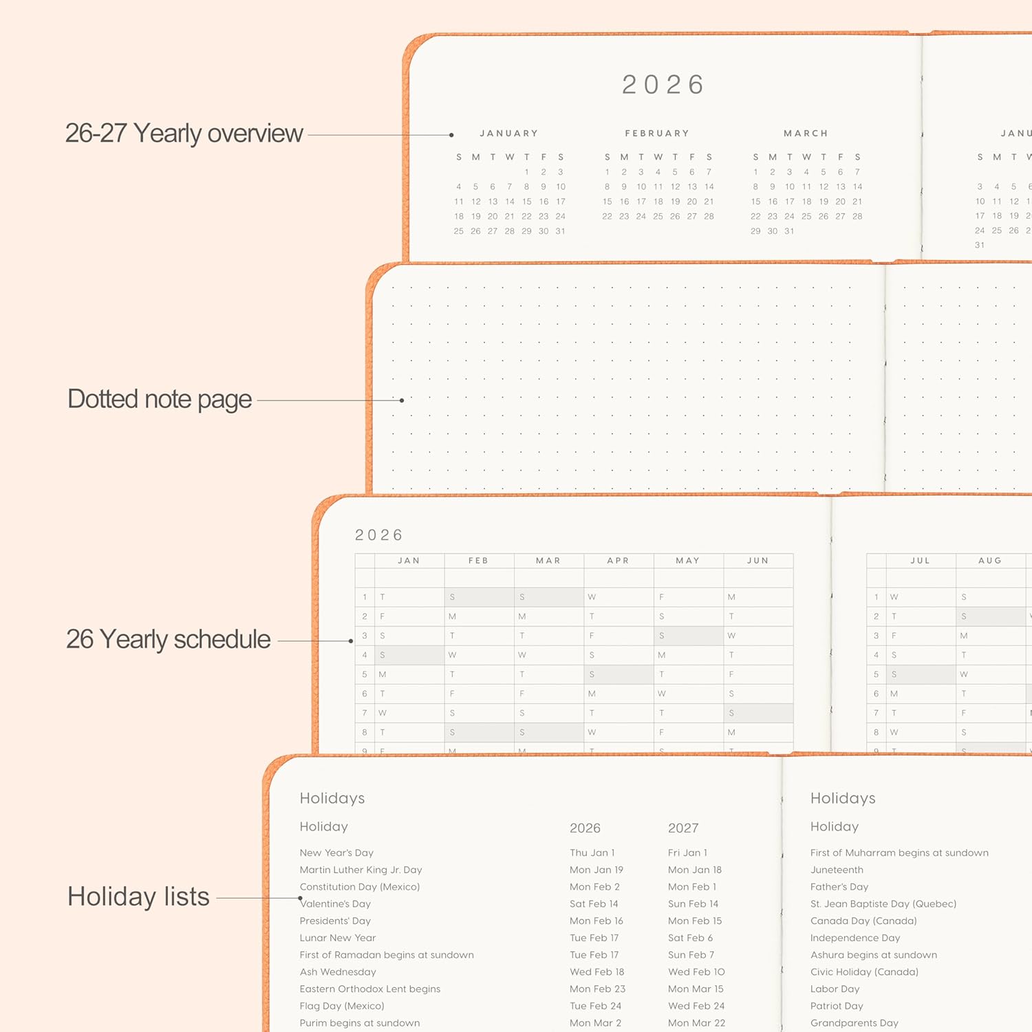 - ENHANCED ORGANIZATION:Use this planner to expand your organizational skills, which includes 2026-2027 Holidays, 2 Pages Yearly Schedule, Monthly View Pages, Weekly View Pages, 10 Note Pages and Monthly Tabs.