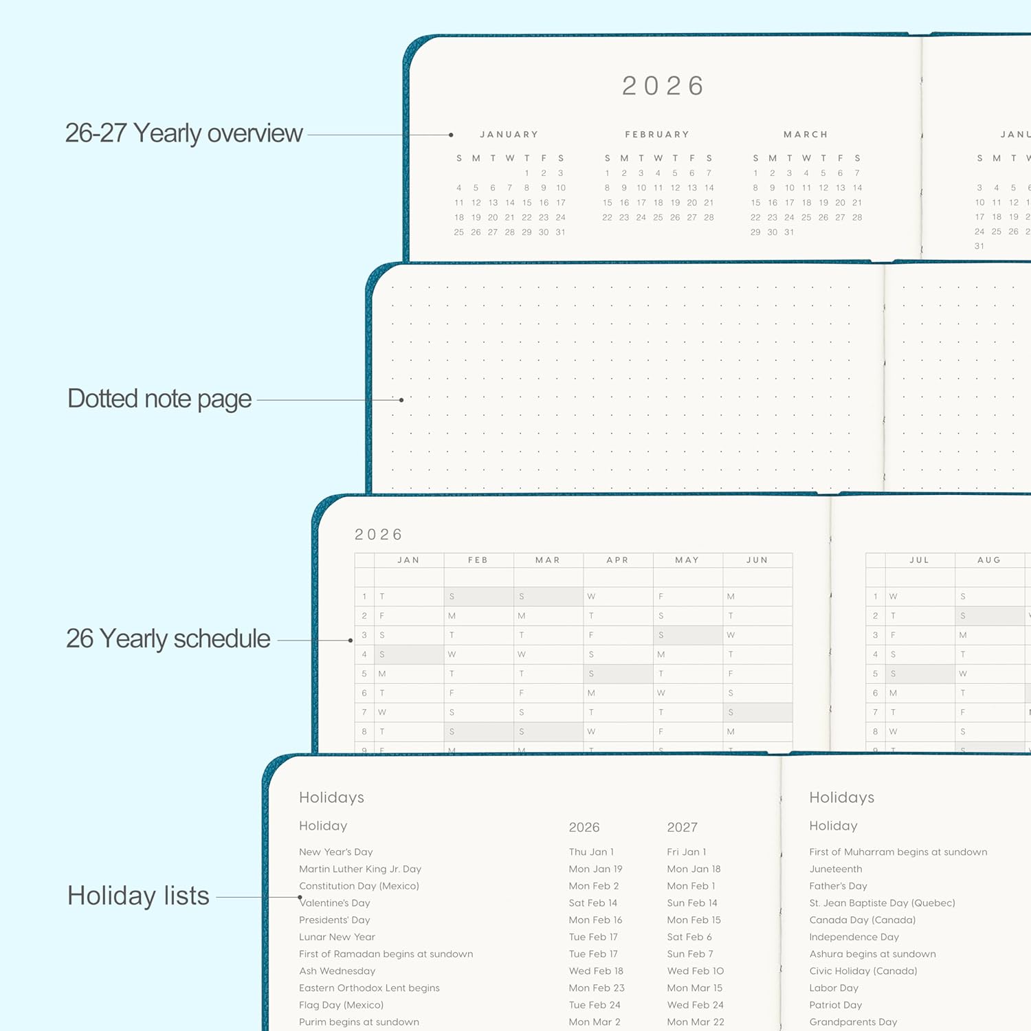 - ENHANCED ORGANIZATION:Use this planner to expand your organizational skills, which includes 2026-2027 Holidays, 2 Pages Yearly Schedule, Monthly View Pages, Weekly View Pages, 10 Note Pages and Monthly Tabs.