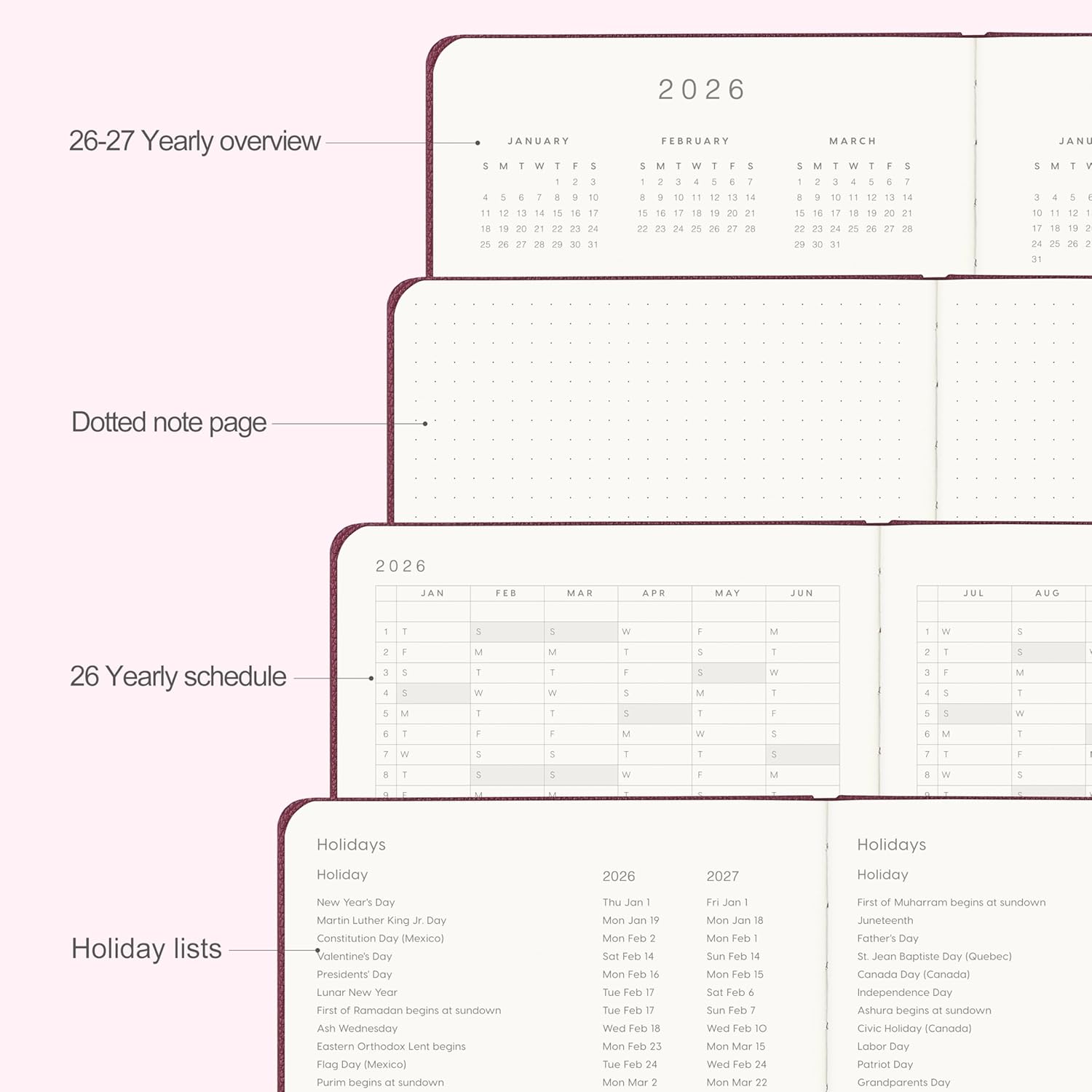 - ENHANCED ORGANIZATION:Use this planner to expand your organizational skills, which includes 2026-2027 Holidays, 2 Pages Yearly Schedule, Monthly View Pages, Weekly View Pages, 10 Note Pages and Monthly Tabs.
