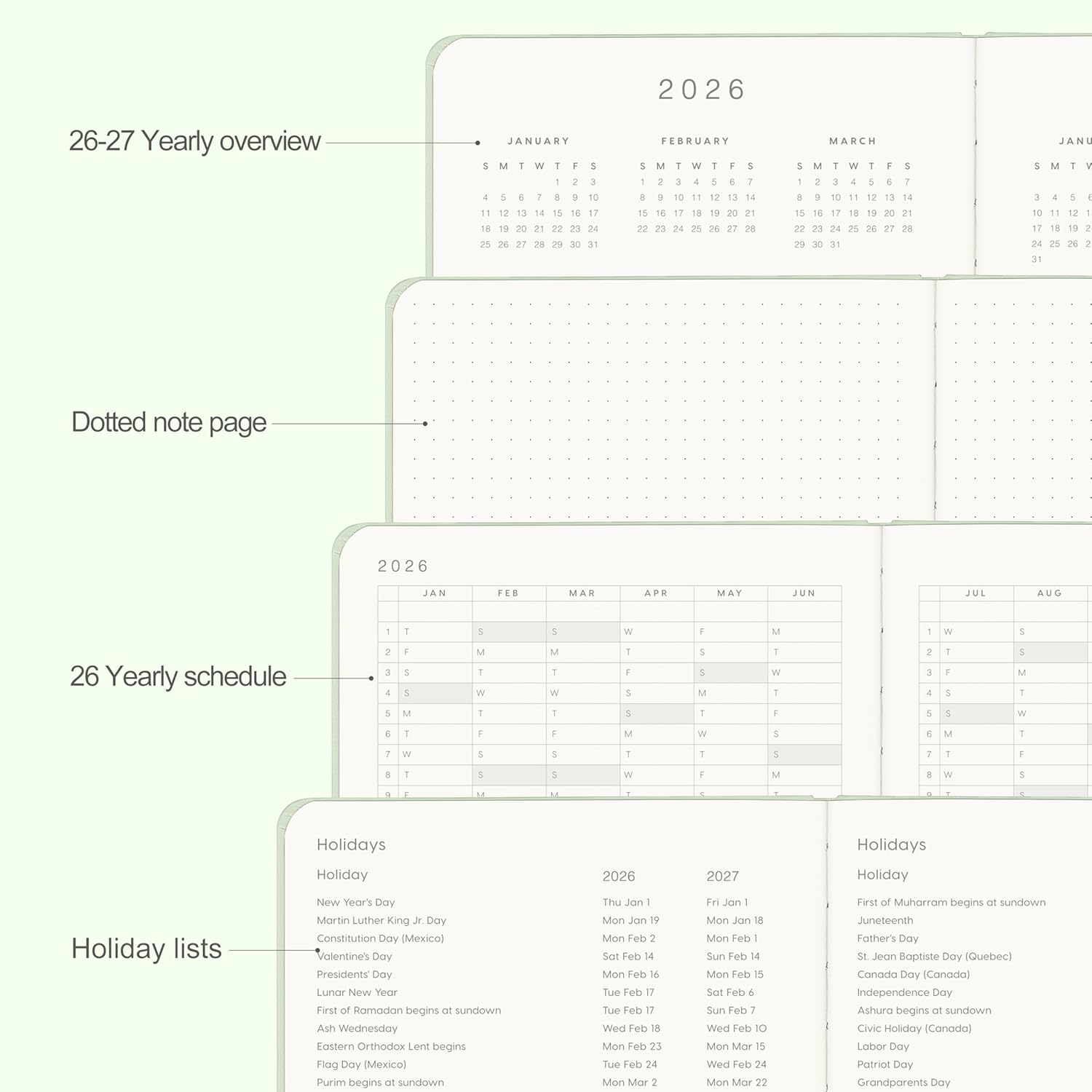 - ENHANCED ORGANIZATION:Use this planner to expand your organizational skills, which includes 2026-2027 Holidays, 2 Pages Yearly Schedule, Monthly View Pages, Weekly View Pages, 10 Note Pages and Monthly Tabs.