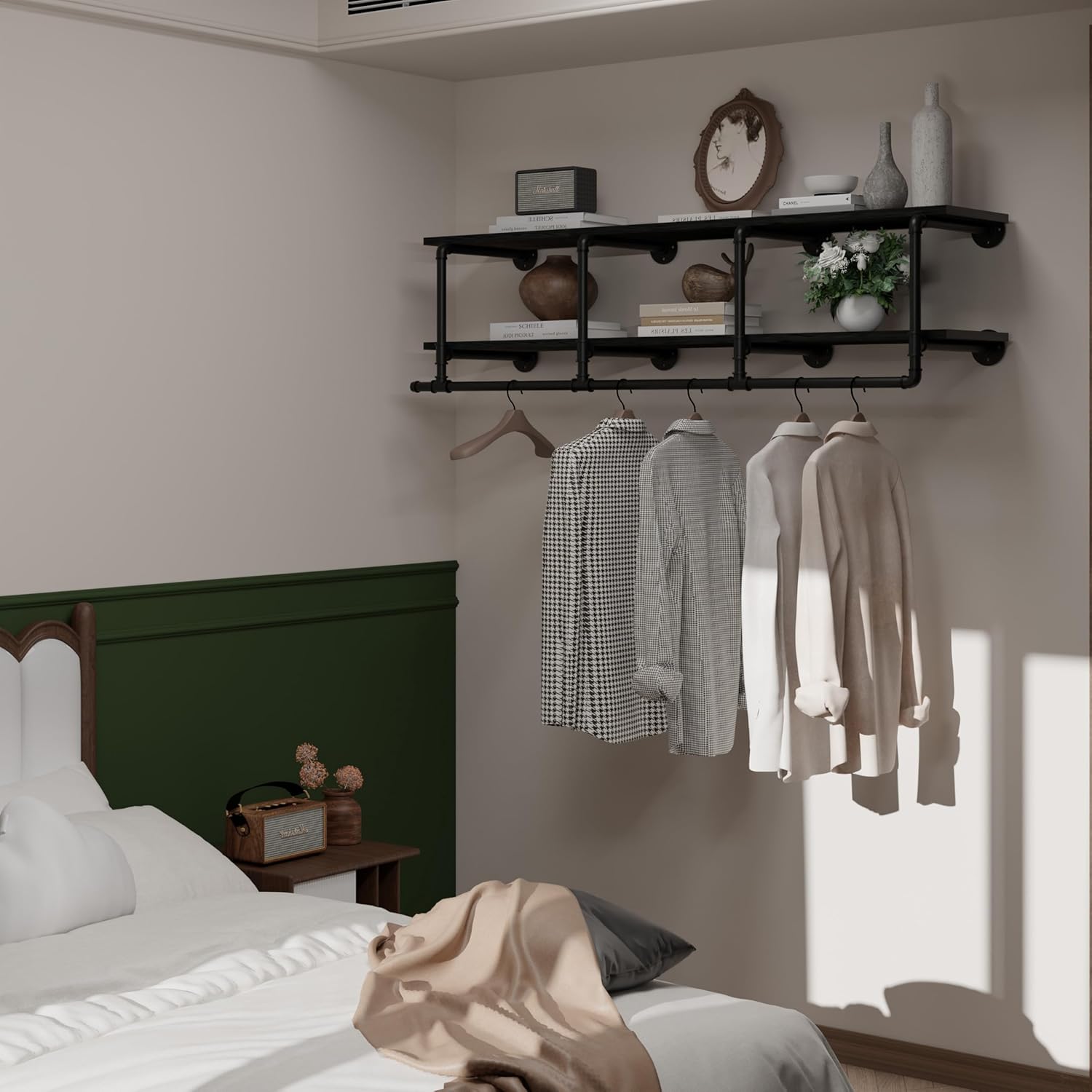 - 【Sturdy and Wear-resistant】 This garment rack is very sturdy installed on solid wall. This item includes hardware to mount on concrete,tile walls or other types walls. It can hold over 200lbs