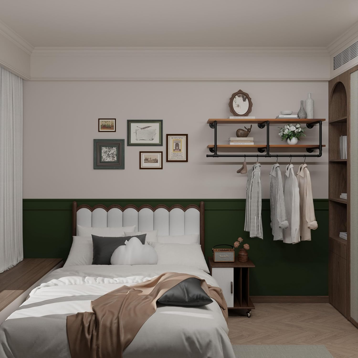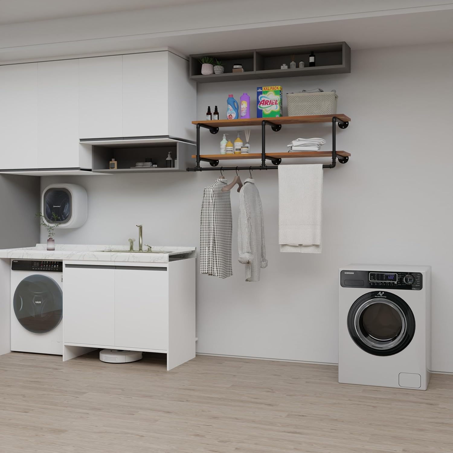 Wall Mounted Clothes Rack 12 Inch Deep, 48 Inch Heavy Duty Garment Rack with Real Brown Wood Shelf, Multi-Purpose Hanging Rod & Space-Saving Closet Storage Organizer