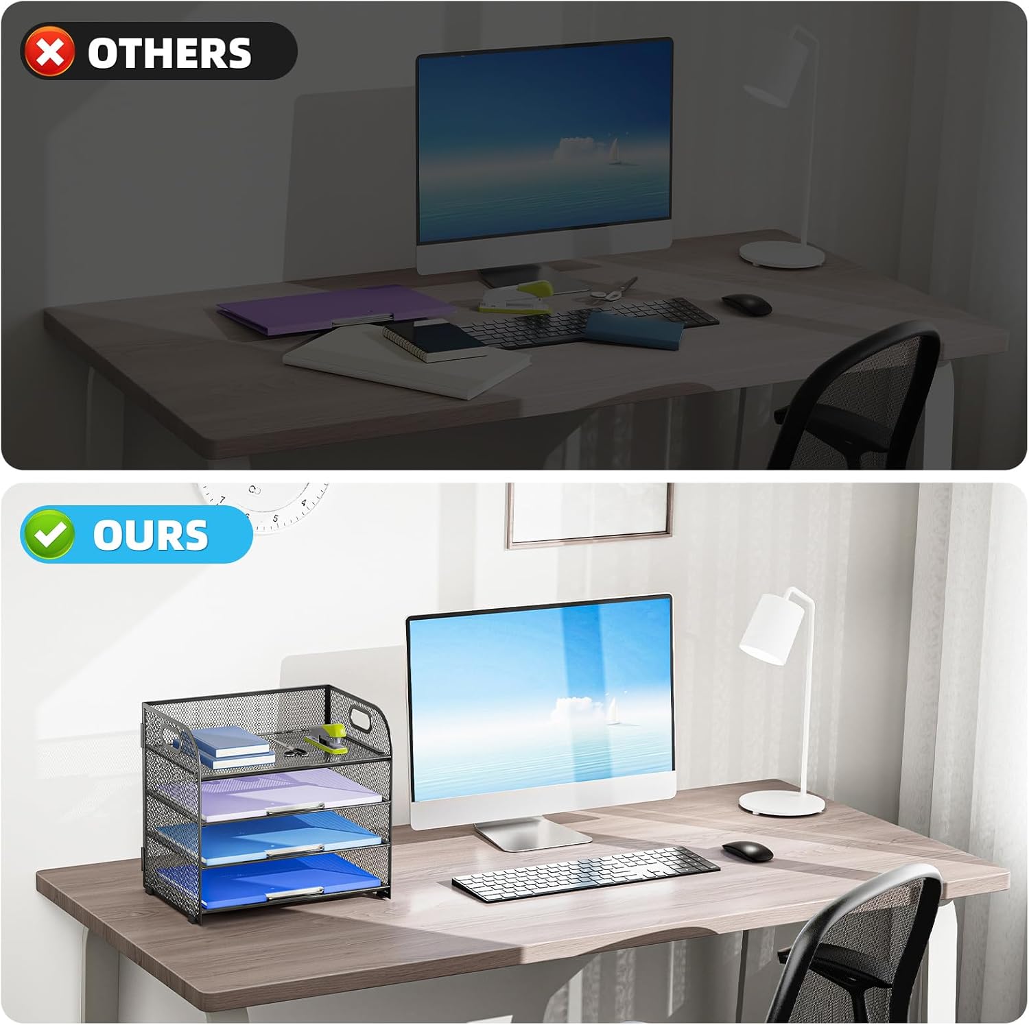 - 【Multi-Purpose Organizer】 4-tier layered design and large capacity make the paper organizer become an ideal choice for managing all kinds of letter-size letters, paper, books, bills, etc. Let you quickly identify the contents of each compartment super easy