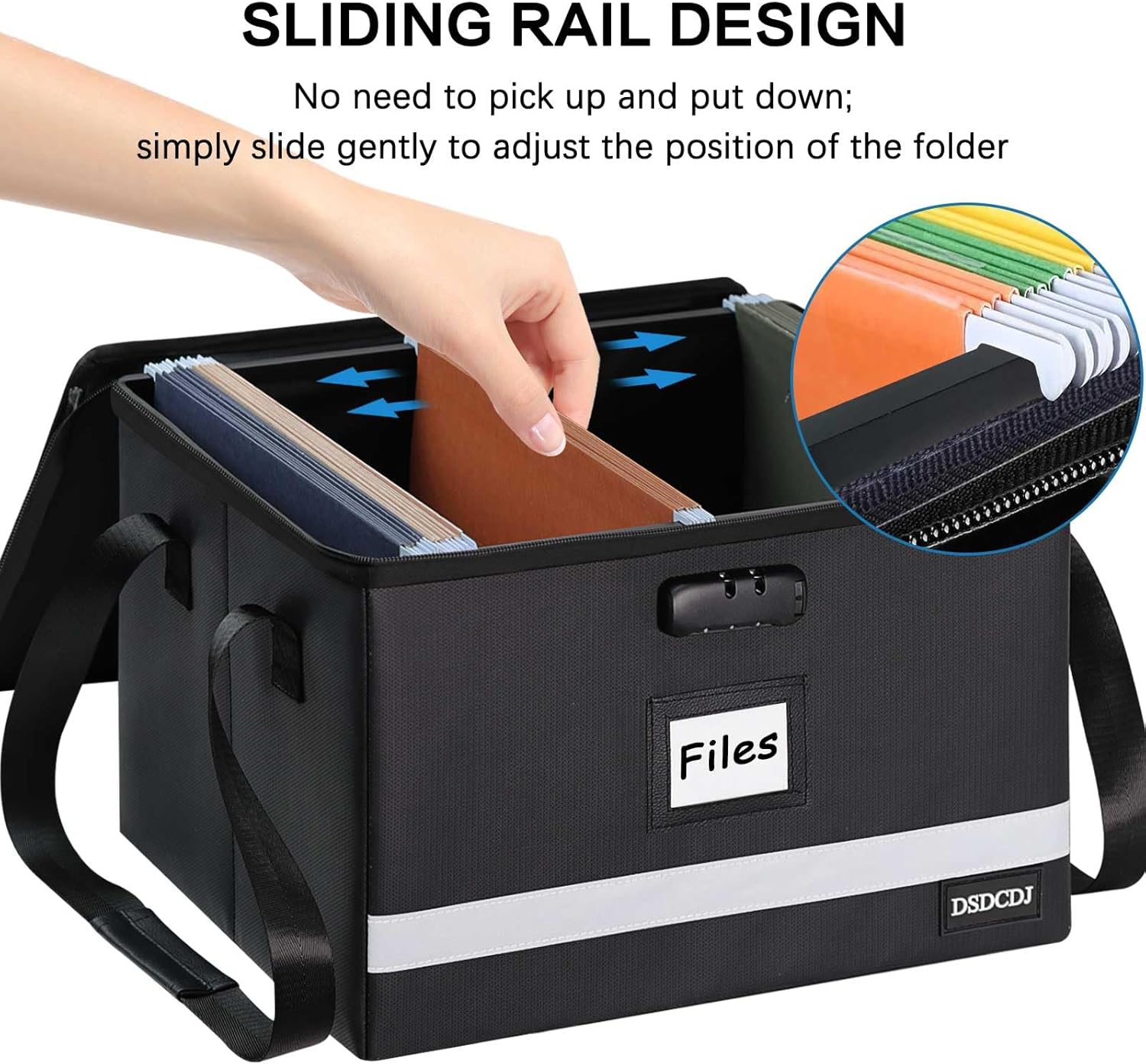 - 【ANTI-STATIC & REFLECTIVE STRIP DESIGN】The reflective strip design on the front of the portable file box with handle allows you to immediately find your fire proof file box even at night, protecting irreplaceable documents and valuables from fire. The transparent label slot allows for quick identification of the contents stored inside the file box and easy sorting