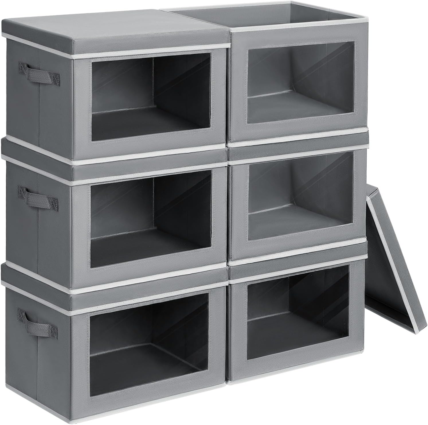 Clothes Organizers and Storage - 6 Pack Large Storage Box with Lids, Foldable Closet Organizer with Lids, Decorative Basket Bins for Home, Dorm, Closet, Grey