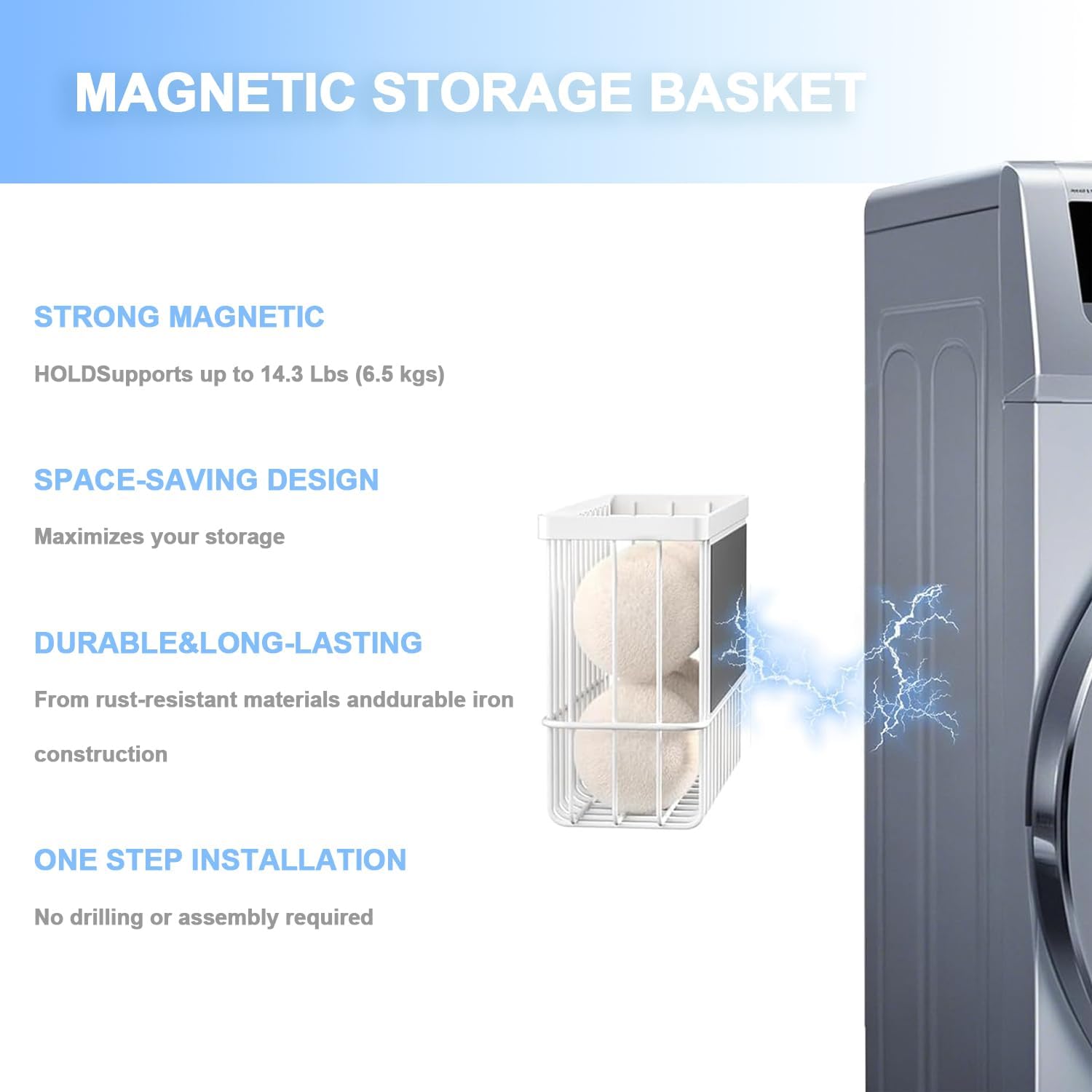- The magnetic dryer ball holder can put it on the side or front of dryer for easy access to get the dryer ball.