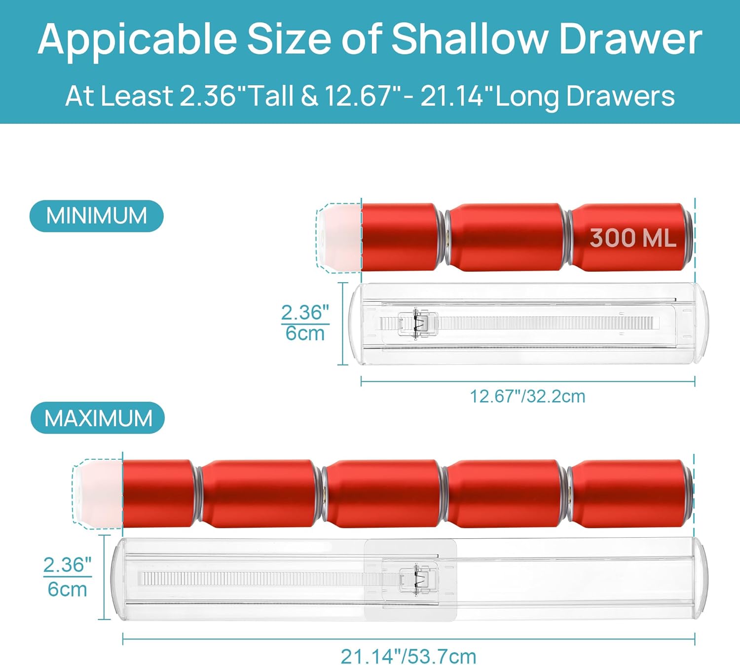 - 【Expandable & Adjustable】With a height of 2.36", and an adjustable length ranging from 12.67" to 21.14", our drawer dividers can be easily fitted into shallow drawers and cabinets, providing the ideal solution for keeping your items organized and your drawers tidy at all times.