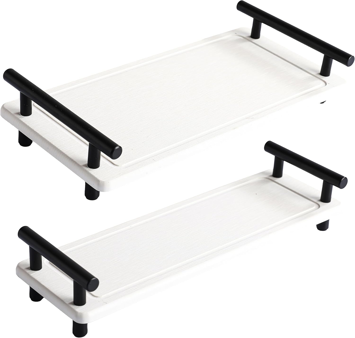 2Pcs Instant Dry Sink Caddy, Water Absorbent Diatomite Tray for Sink, Stone Drying Tray with Metal Handle, Keeping Kitchen and Bathroom Tidy and Clean (White & Black Handle, Large & Small)