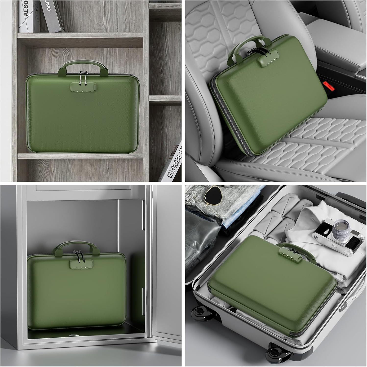 - Upgraded Hard-Shell Design Fireproof Box: Our fireproof document box combines hard-shell construction with fireproof materials, offering unmatched protection and durability. Unlike traditional soft case, our design withstands extreme conditions while maintaining a sleek, professional look. The Non-dusty material actively repels dust,hair and stains, keeping your box clean and tidy for years. It’s the ultimate solution for safeguarding your important documents, laptop, and valuables