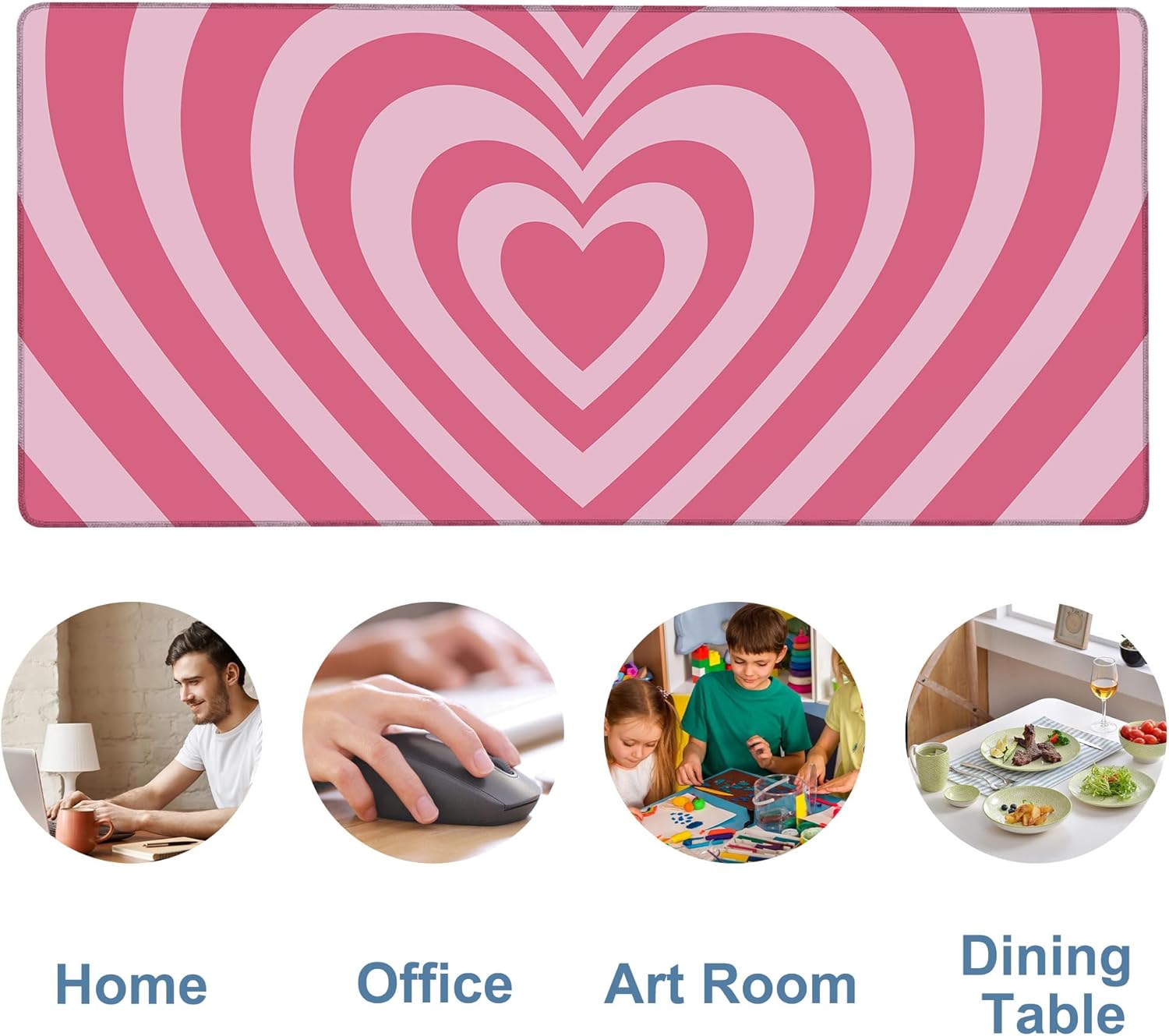 Gaming Desk Pad Large Extra Length Retro Style Hearts Mouse Pad Keyboard Laptop Non-Slip Waterproof with Rubber Base Thick Stitched Edge Mouse Mat for Office Home 35.4 x 15.7 Inches