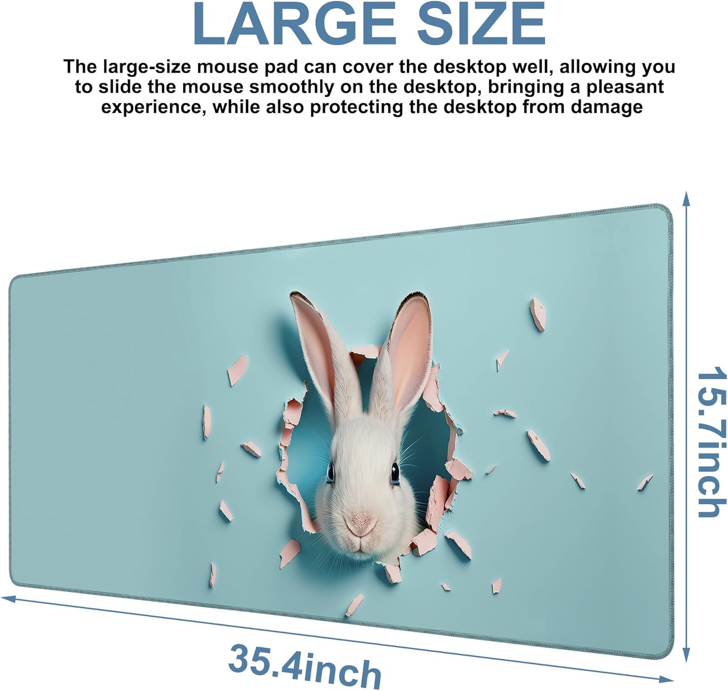Gaming Desk Pad Large Extra Length Bunny Peeking Out of A Hole Mouse Pad Keyboard Laptop Non-Slip Waterproof with Rubber Base Thick Stitched Edge Mouse Mat for Office Home 35.4 x 15.7 Inches