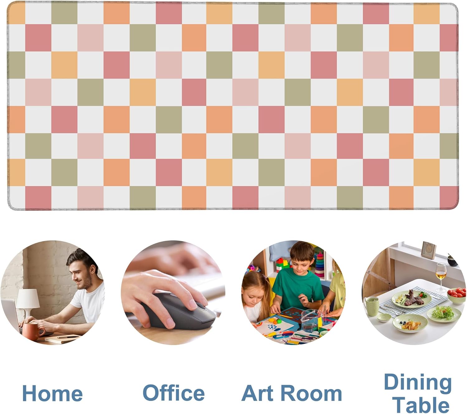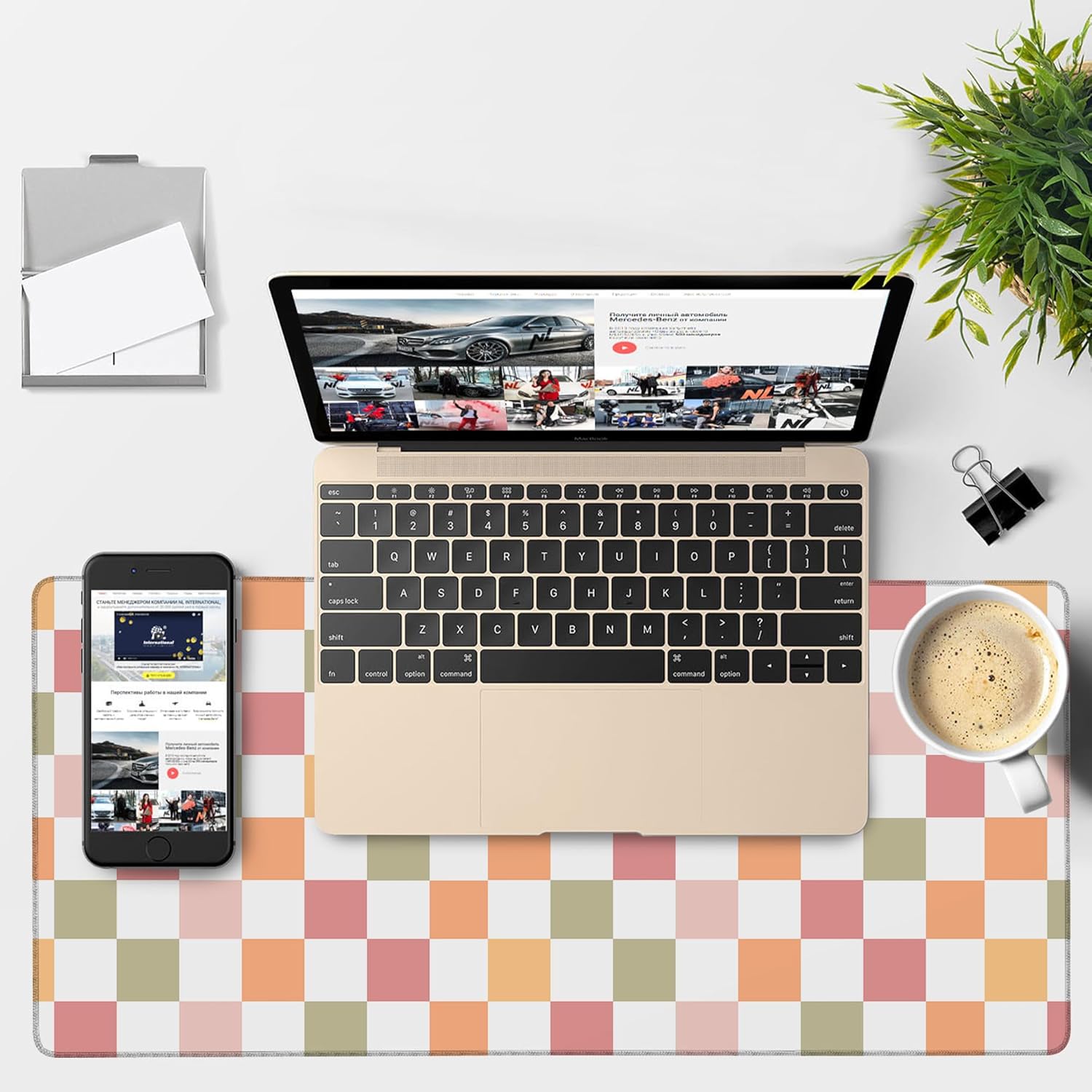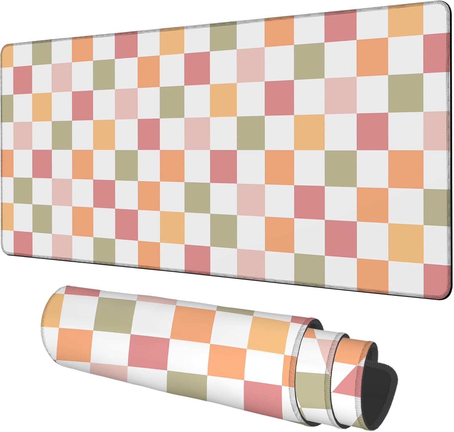 Gaming Desk Pad Large Extra Length Multicolored Chess Board Mouse Pad Keyboard Laptop Non-Slip Waterproof with Rubber Base Thick Stitched Edge Mouse Mat for Office Home 35.4 x 15.7 Inches