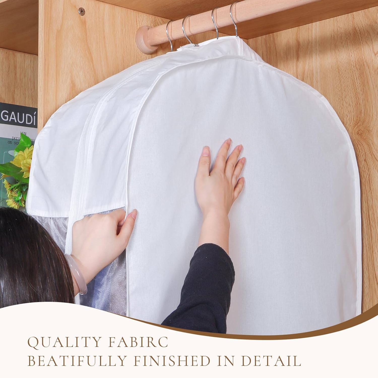 - Versatile Usage: Elevate your closet with these elegant white garment covers from Univivi. Whether you're a woman or a man, Univivi zippered hanging clothes bags are perfect for preserving a variety of clothing items. From men's suits to winter coats, these cotton garment bags ensure your wardrobe stays immaculate and ready to wear at all times.