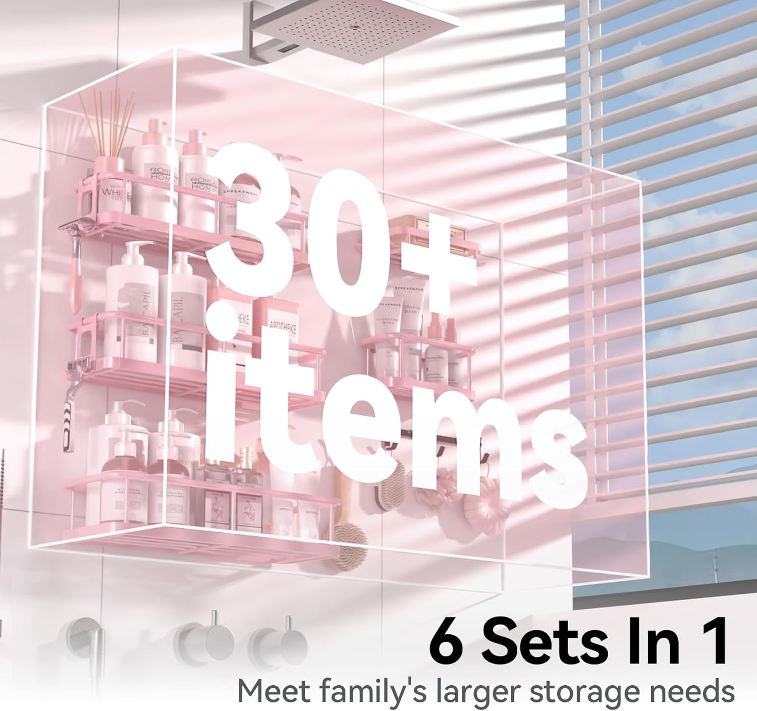 - 6 Pieces for Versatile Home Organization: The 6-piece bathroom shower shelves can be used not only in shower, but also in other cluttered areas at the same time, such as organizing spices in kitchen or cleaning supplies under sink, to keep everything in your home neat and tidy. And its sleek and modern look will add a touch of elegance to your family as a great home decor