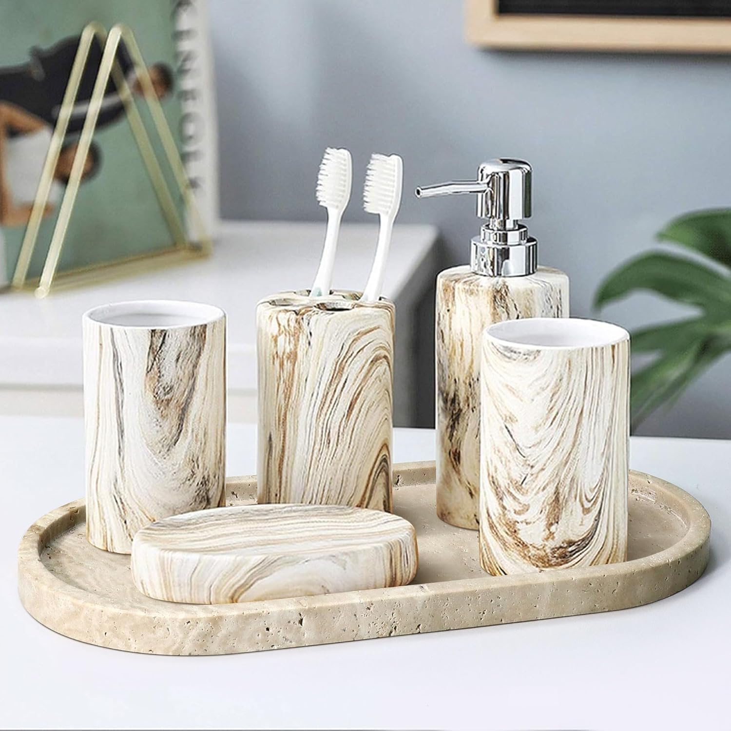 - Vanity tray 12 x 5 inches is suitable for various scenarios.It is the perfect size to place on a bathroom vanity to store hand soap, toiletries and hand towels. Because it is natural marble, the texture of each stone is different and the pattern on the tray you buy will be different from the picture