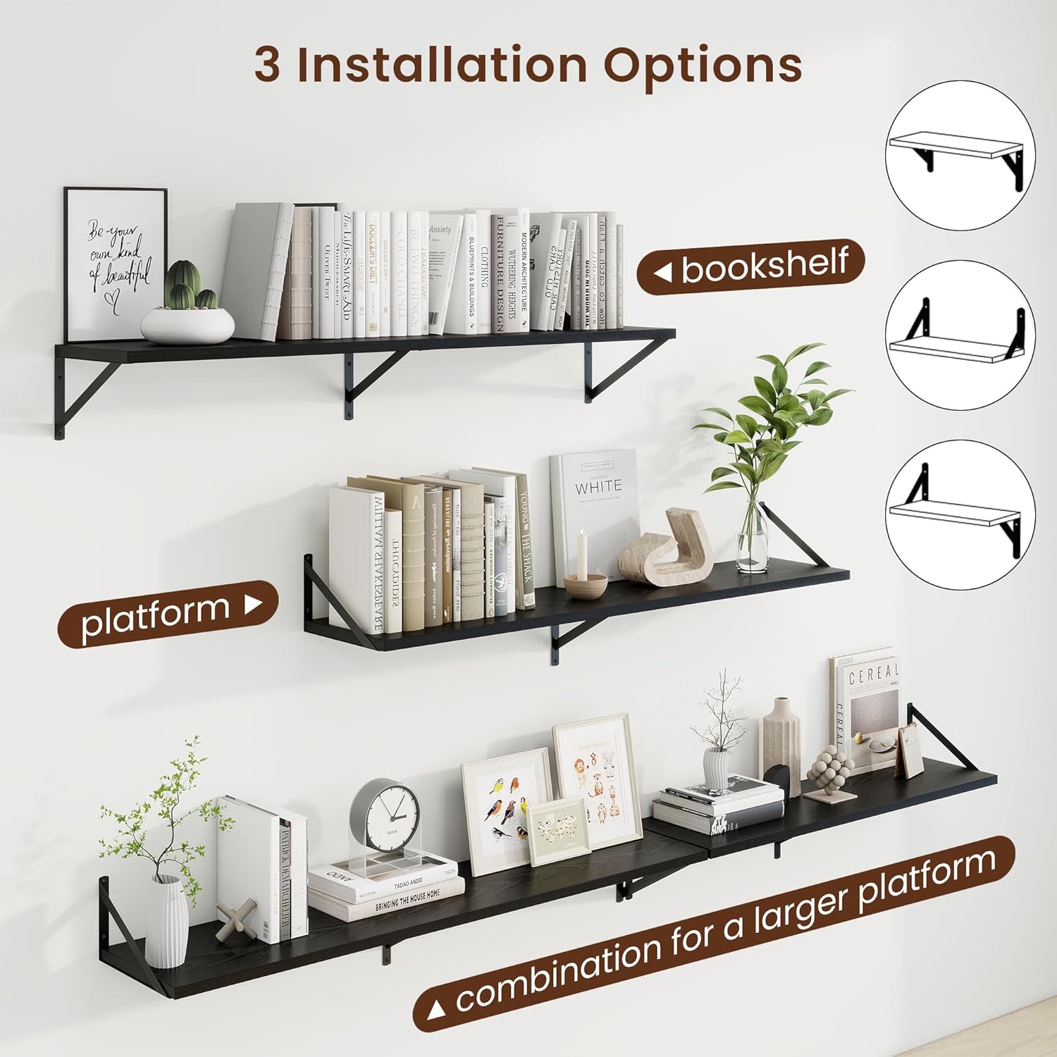 - MULTIPURPOSE USE - Unleash your creativity and discover the endless possibilities of our floating wall shelves! The brackets can be arranged under the board to transform shelves into a bookshelf or a bedside table. Combine multiple boards to craft an expansive area that suits your lifestyle