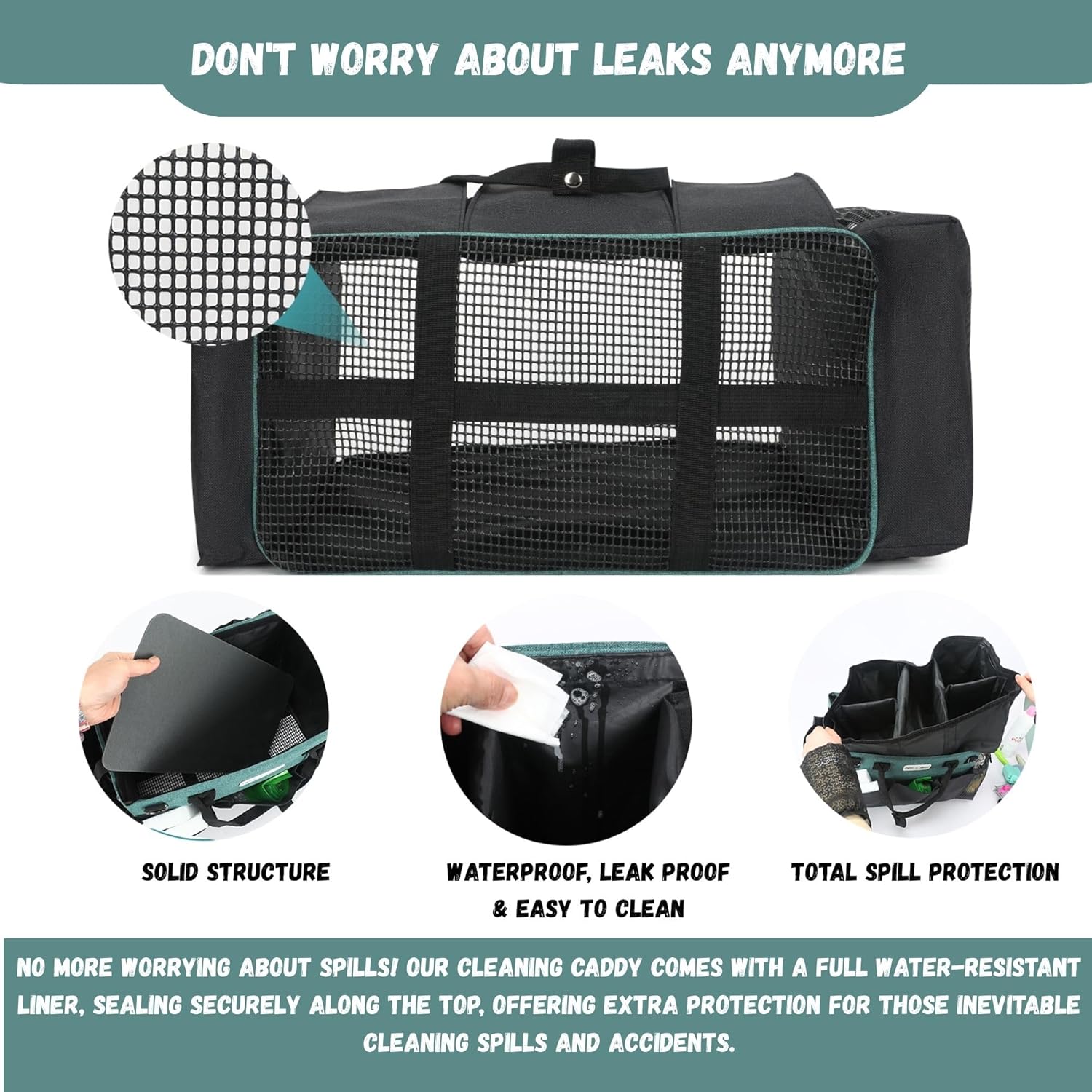 - Spill-Proof Protection: The Zyno Moon cleaning tote has a sealed, water-resistant liner to prevent spills and leaks. Ideal for cleaners, housekeepers, and auto detailers, it keeps liquids from accidentally leaking or soaking into fabric, floors, or surfaces, offering reliable spill containment protection. It can be used for housework, car detailing, gardening, painting, music, and any portable supply storage needs.