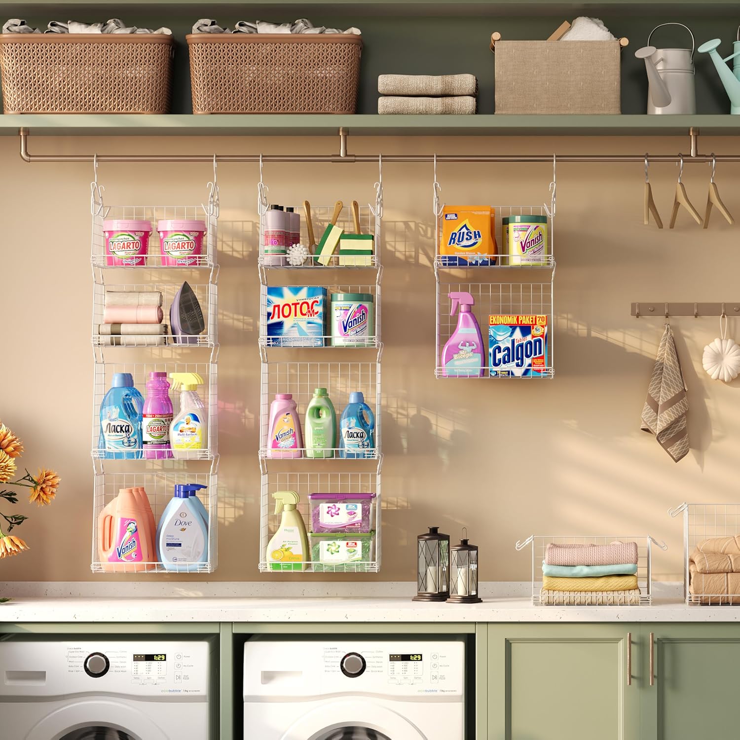 - Multi-Purpose Functionality: This versatile wire hanging basket is not limited to clothing storage. The wire rack accessory can also be used to hold heavy duty laundry detergent liquid soap, dryer sheet holder, laundry containers, clothes, laundry decor, softener dispenser, or even organize, small items for storage or cargo racks.
