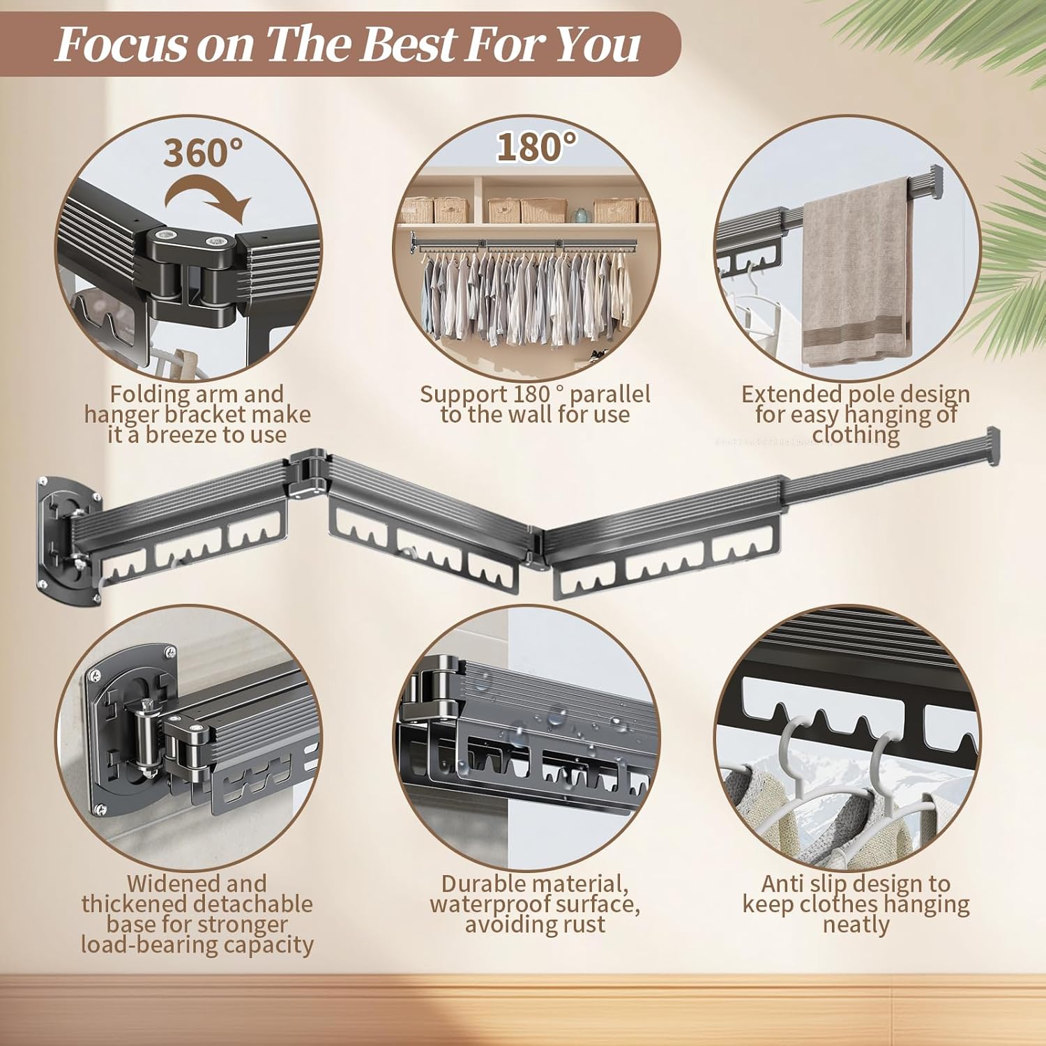 - Transform Your Laundry Room! Meet the "space-saving hero" that rotates, folds, and dominates! Transform your laundry room into a space-saving powerhouse! This rotating folding rack isn’t just a rack—it’s perfect for urban dwellers, students, and tiny homes