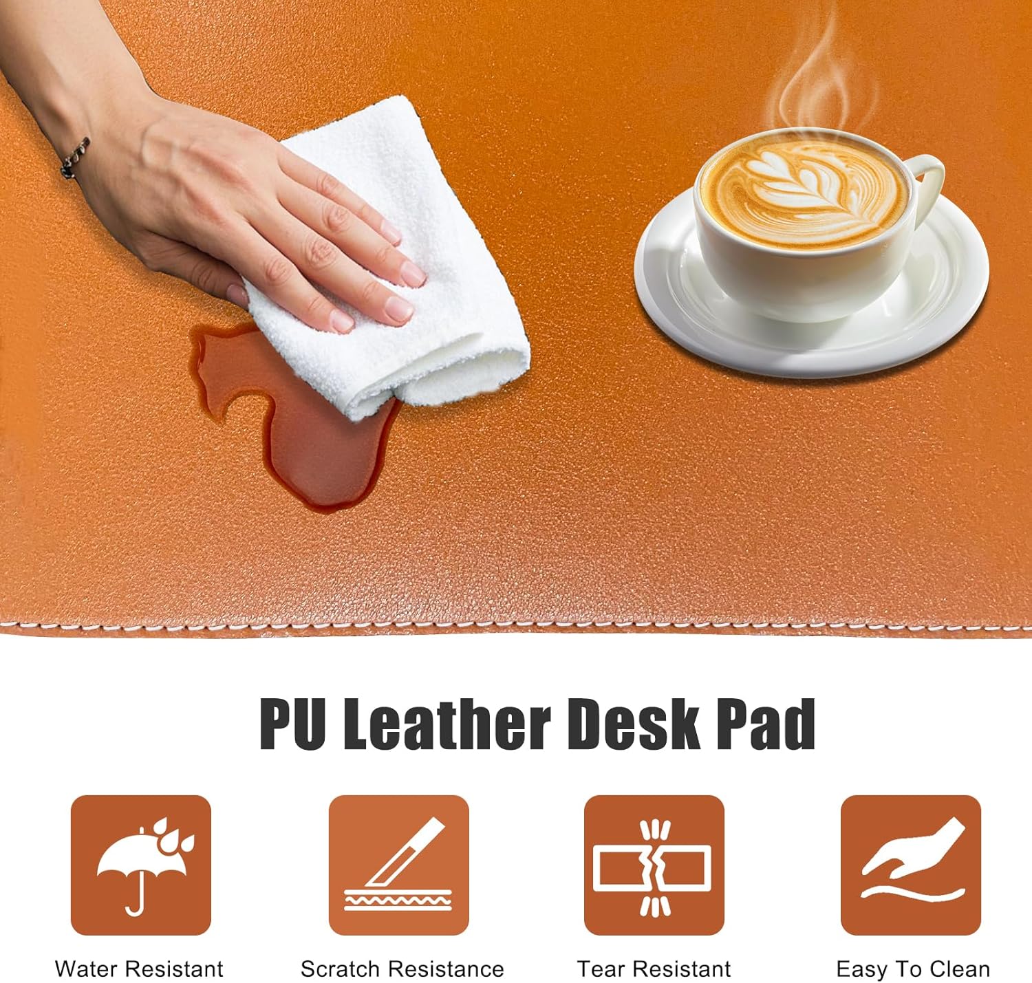 Desk Mat with Lip & Reinforced Stitched Edge|Non-Slip Waterproof PU Leather Desk Pad|Ergonomic Keyboard Mouse Pad with Edge Protector|for Office, Home, Study(28.74" x 16.73",Brown)