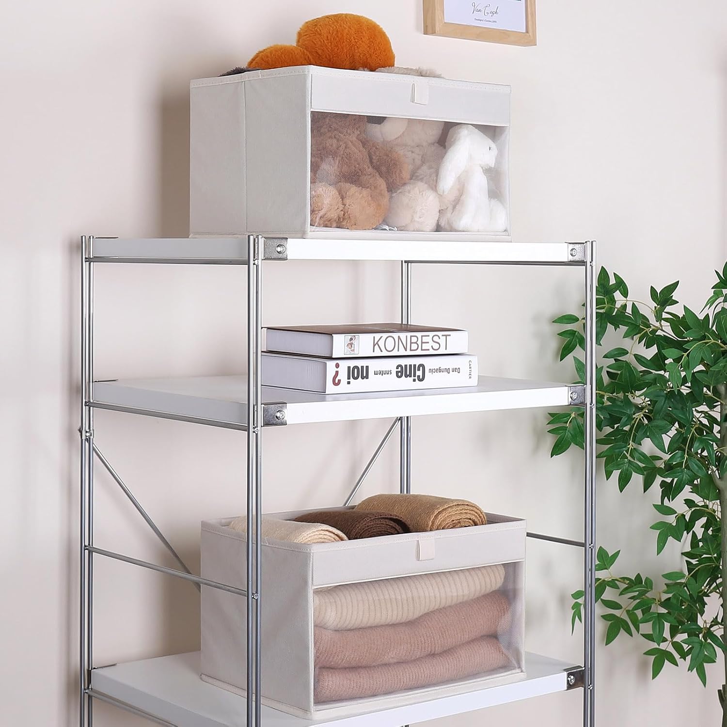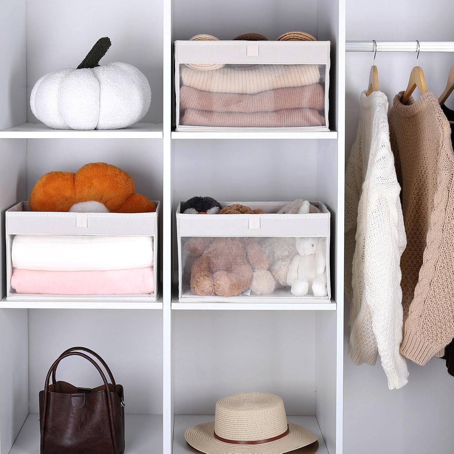 - 【CLEAR WINDOW】Transparent front panel lets you easily identify contents like clothes, towels, or linens without opening these fabric organizer baskets.