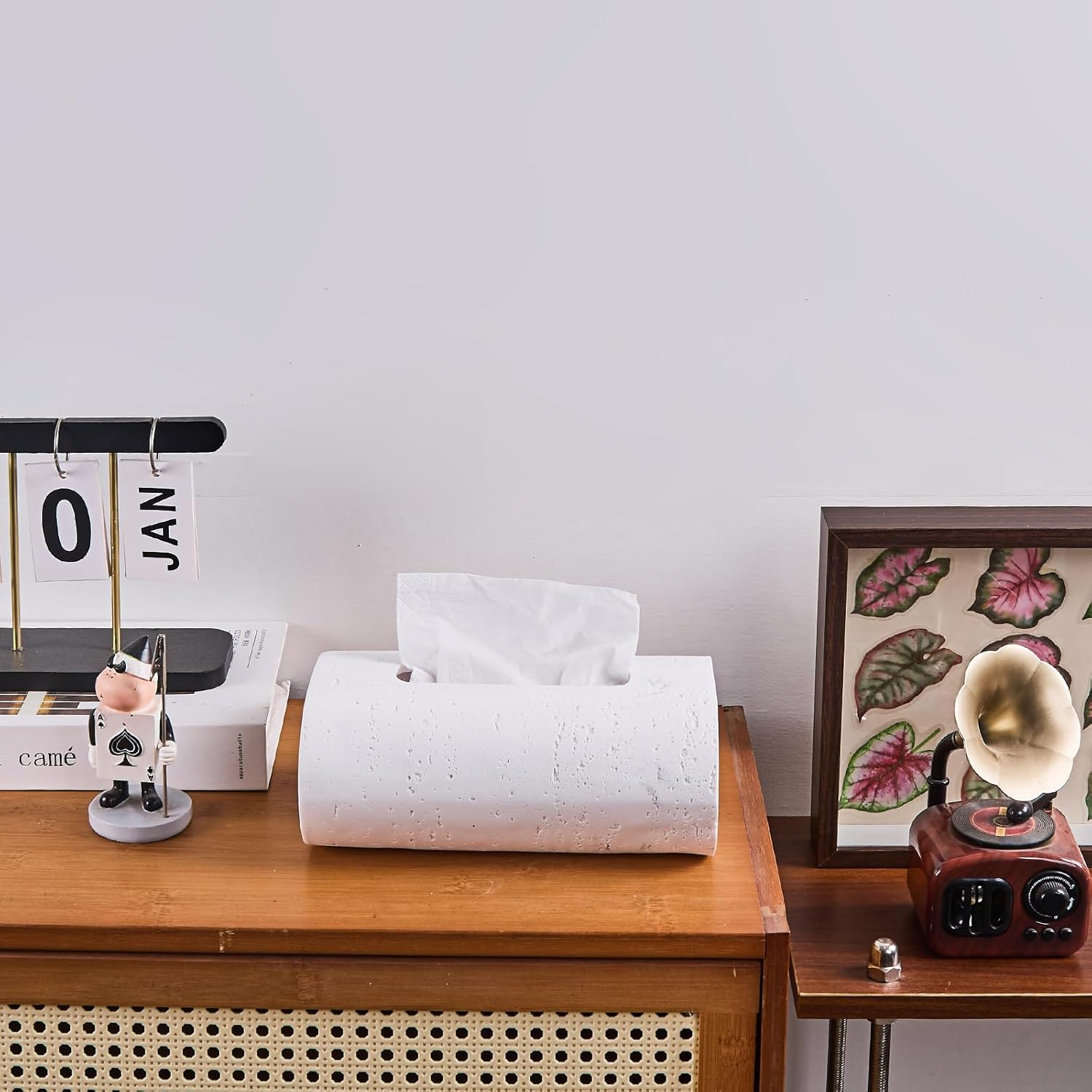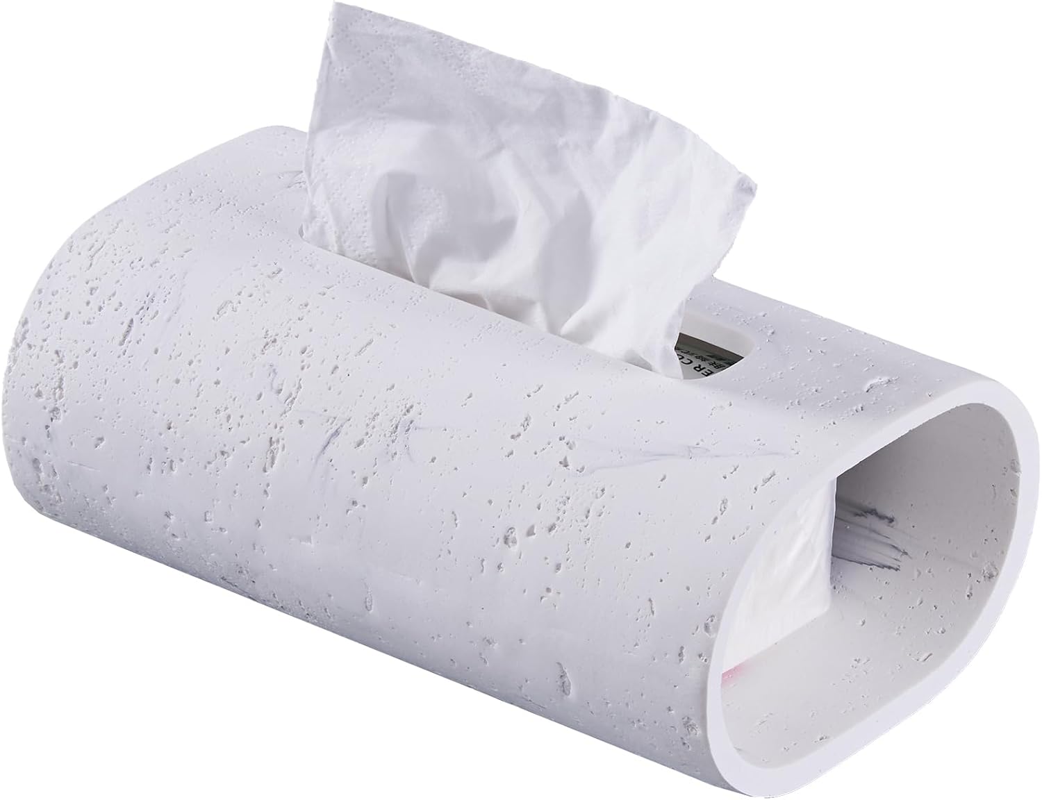 Natural Travertine Textures Tissue Box Holder Rectangle, Resin Facial Tissue Holder Cover, Decorative Bulk Tissue Paper Dispenser for Bathroom Kitchen Bedroom Living Room Office (White)