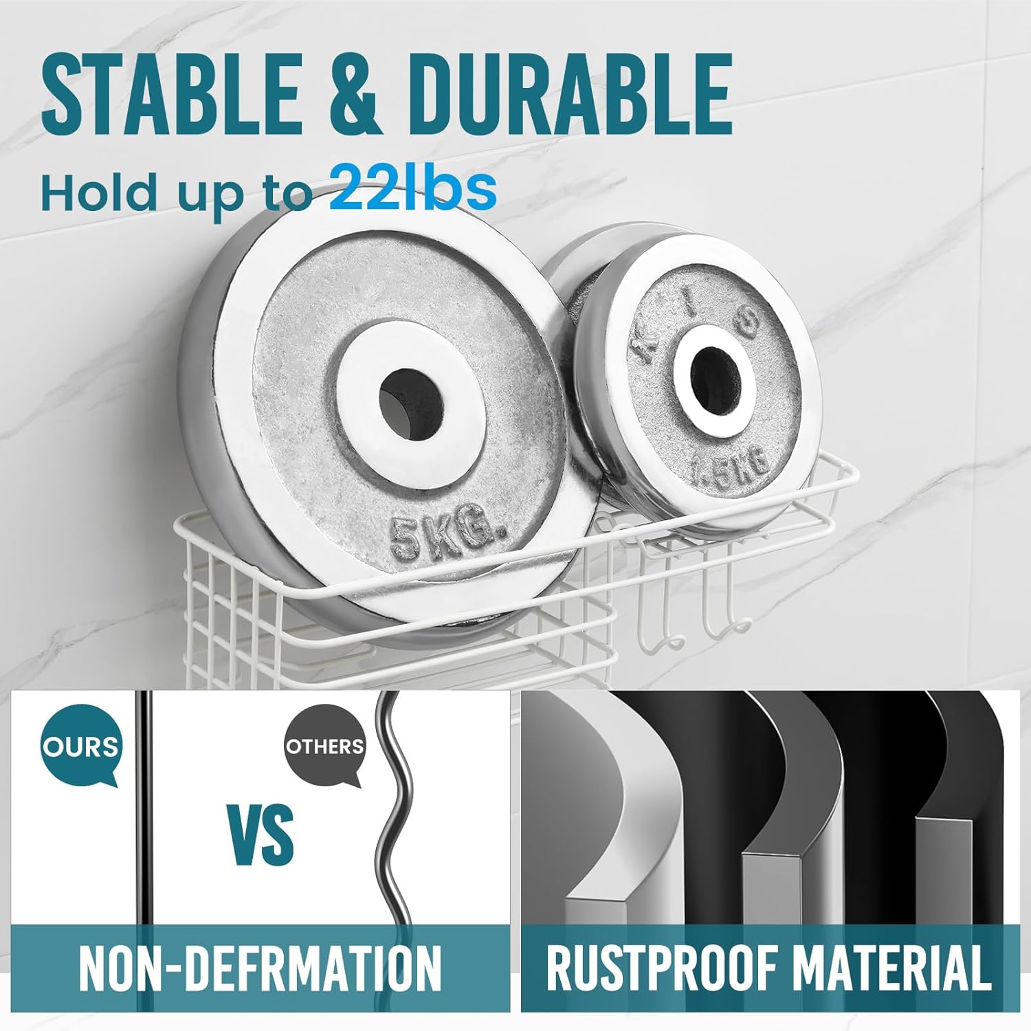 - Durable & Strong Suction: Our suction cup based on the bionics octopus sucker principle is made of TPE material. Each suction shower caddy with 2 suction cups holds up to 22 lbs. Shower caddy suction cup is waterproof and keeps stable and sturdy when showering without any concerns