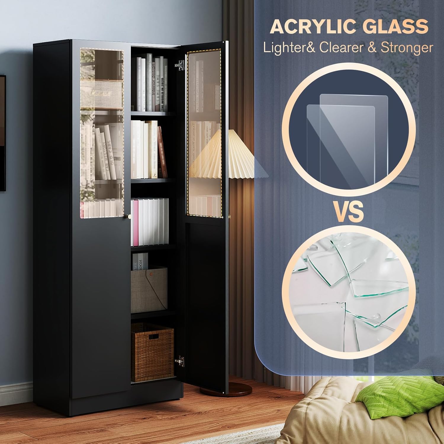 - Display Cabinet with Acrylic Doors: The 2 doors of this curio cabinets with Acrylic, so that the items inside are clear at a glance, easier and fast for you to find files, medicine,et. Warm Tips: Acrylic doors come with a peel-off protector.