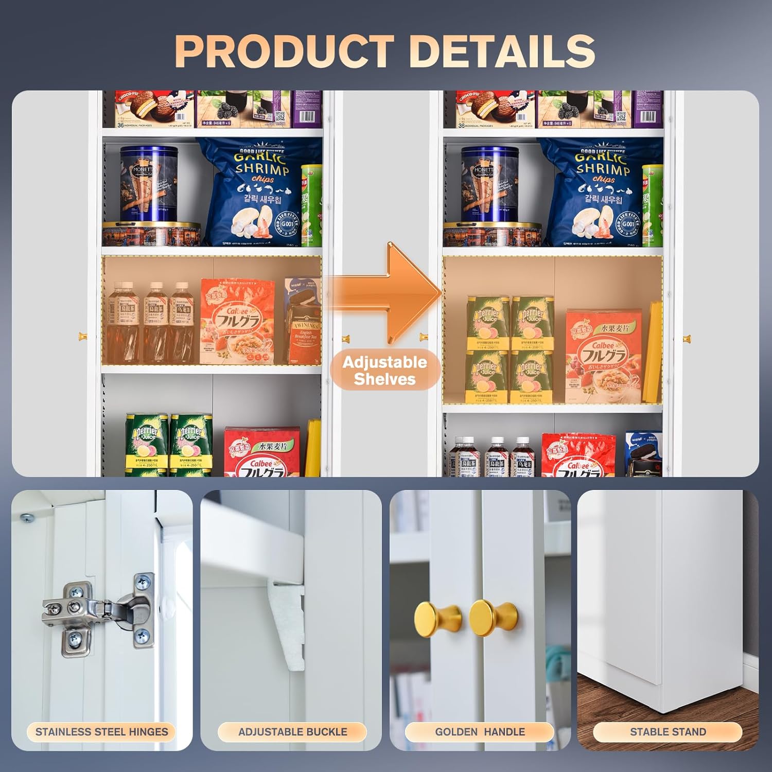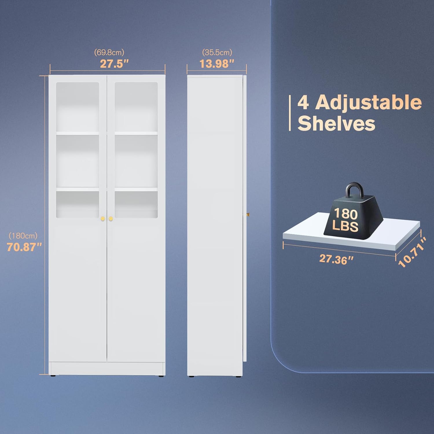 - Metal Storage Cabinet:Made of 0.8mm thick cold-rolled steel, this metal cabinet is 20% stronger than common steel, allowing each adjustable shelf to hold up to 88lbs. Measures 13.98"D x 27.5"W x 70.87"H with a 10cm high solid metal base. Packed with three layers of foam, it also comes with a wall reinforcement to avoid the glass from breaking during transportation, making it safer to use.