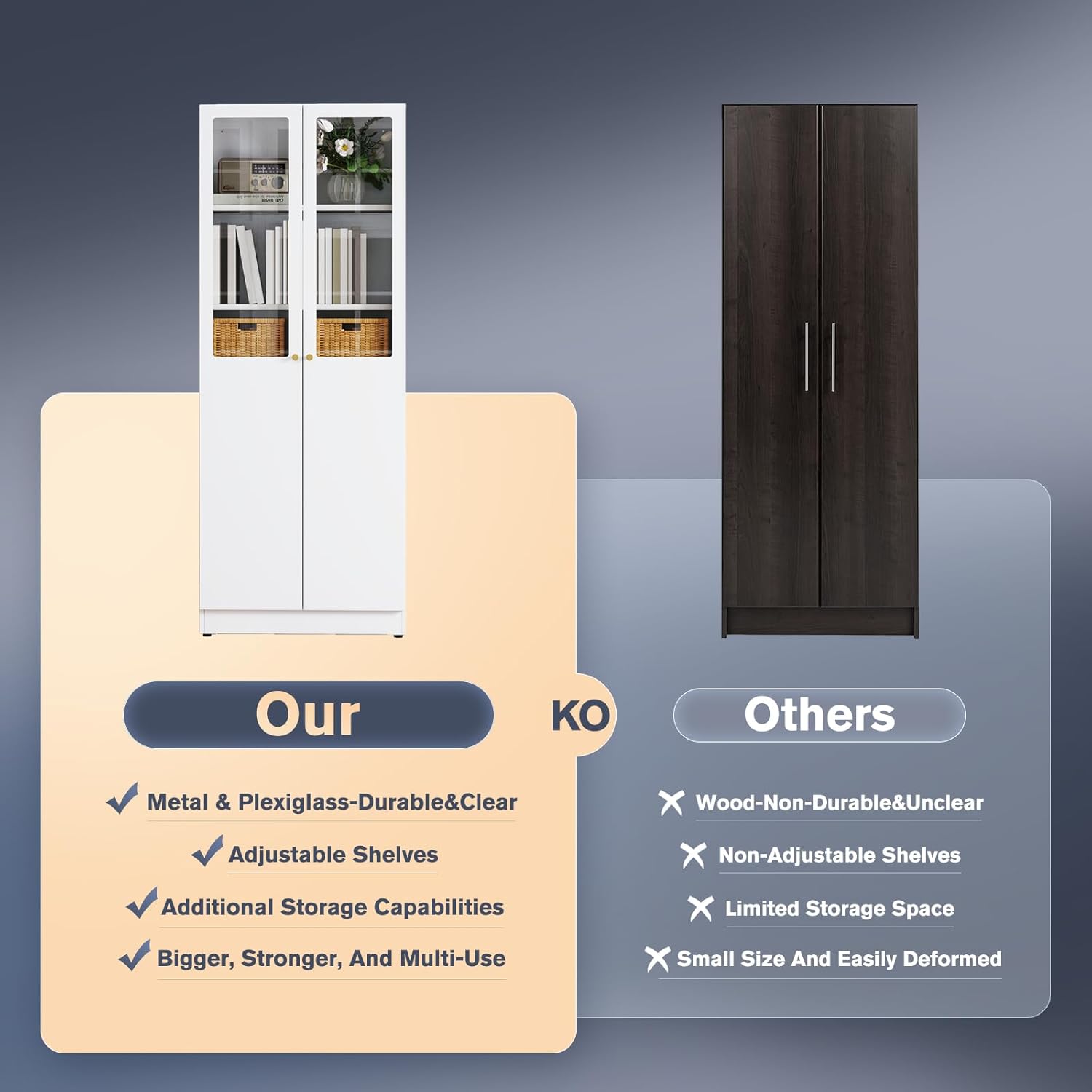 - Storage Cabinets for Multiple Purposes:A nice dust proof display cabinet to store a variety of books, collectibles, dishes, shoes, bags, and more. This steel storage cabinet can be used as a display cabinet for curios, books, artwork in your living room. It can also be used as a glass display cabinet, bookshelf, media cabinet, miscellaneous cabinet in office, bathroom, kitchen etc. With local warehouses in USA, we are able to provide fast deliveries.