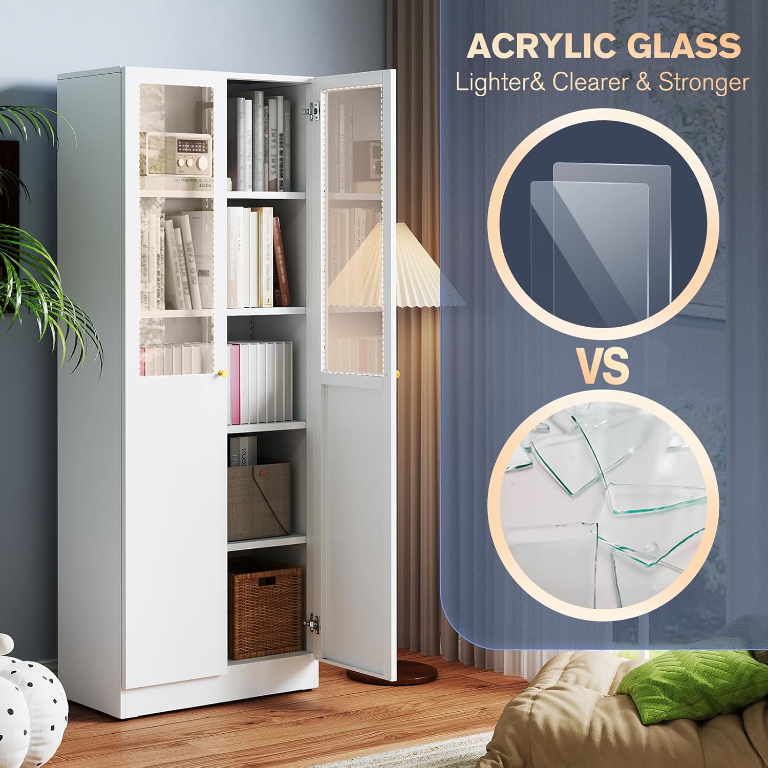 - Display Cabinet with Acrylic Doors: The 2 doors of this curio cabinets with Acrylic, so that the items inside are clear at a glance, easier and fast for you to find files, medicine,et. Warm Tips: Acrylic doors come with a peel-off protector.