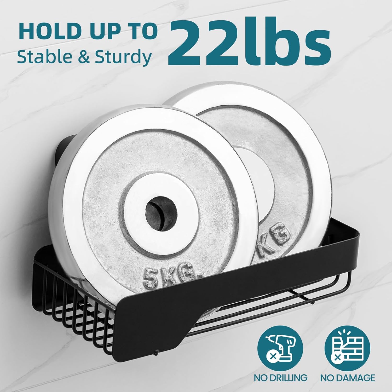 - Durable & Strong Suction: Our suction cup based on the bionics octopus sucker principle is made of TPE material. Each suction shower caddy with 2 suction cups holds up to 22 lbs. Shower caddy suction cup is waterproof and keeps stable and sturdy when showering
